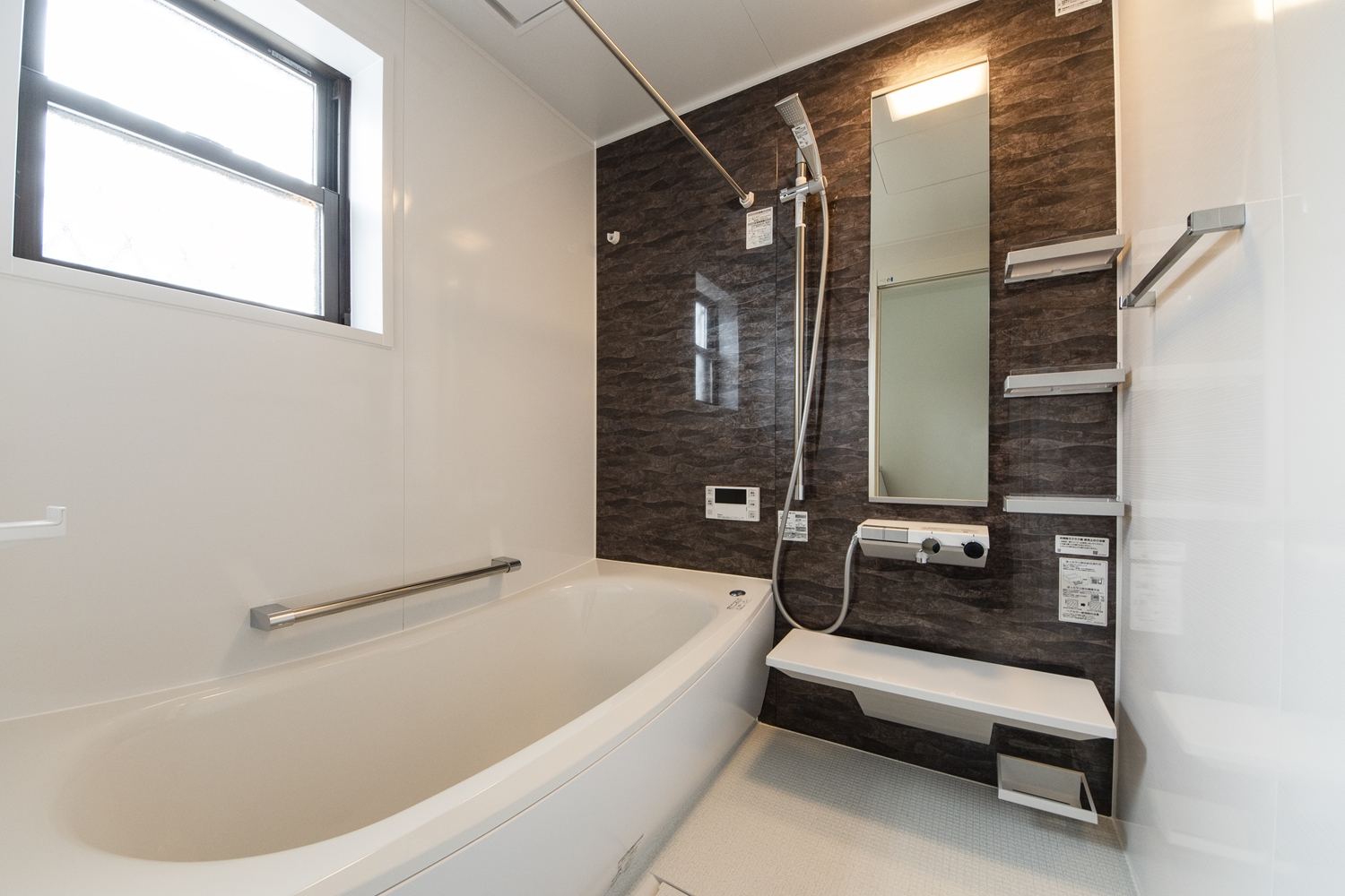 巧みな積石をイメージした石目柄のアクセントパネルが上質な空間を演出します。