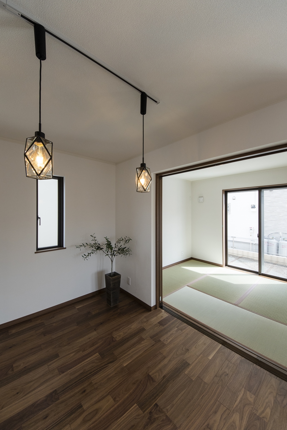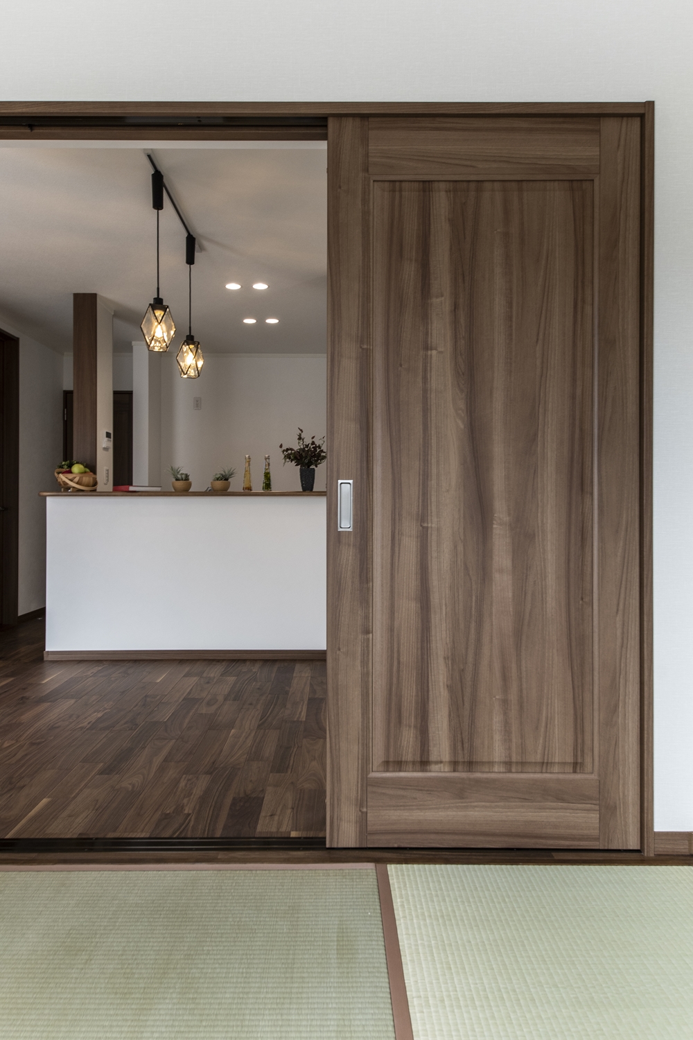 扉を開けてひとつなぎになった畳敷き洋室はリビングに開放感をプラスしてくれます。