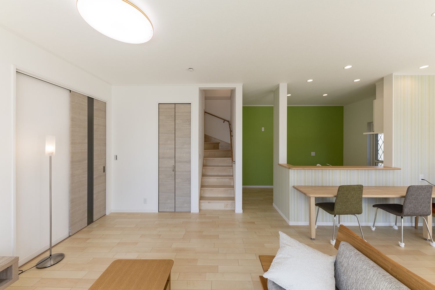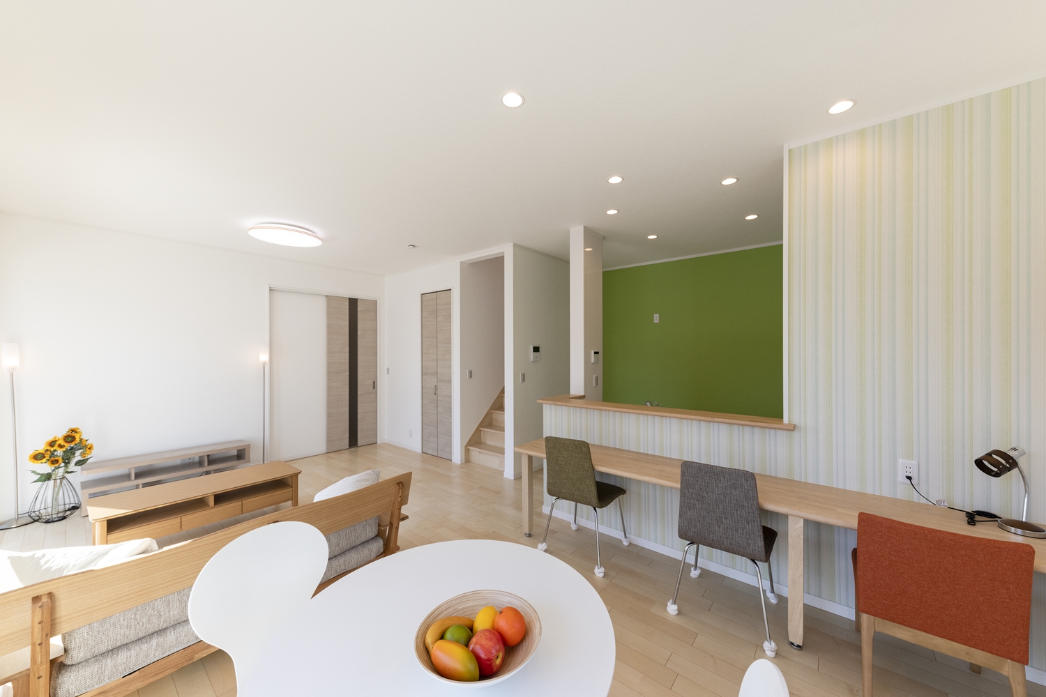 リビングイン階段を取り入れることで、ご家族が自然と顔を合わせる機会が増えます。