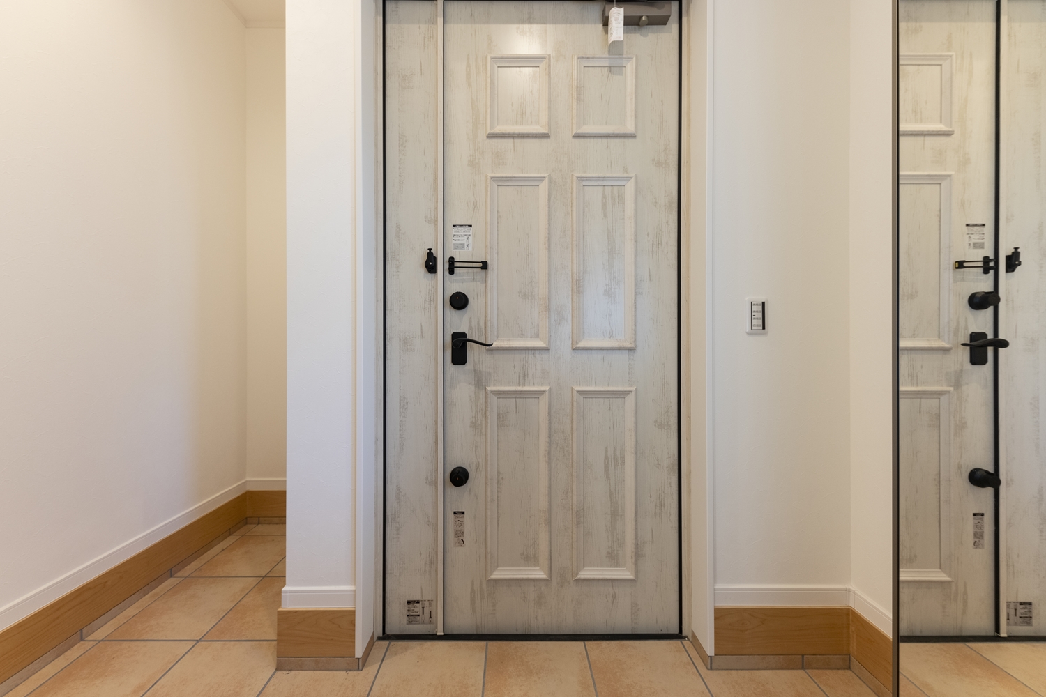 おしゃれなアンティーク調の玄関ドアを施しました。