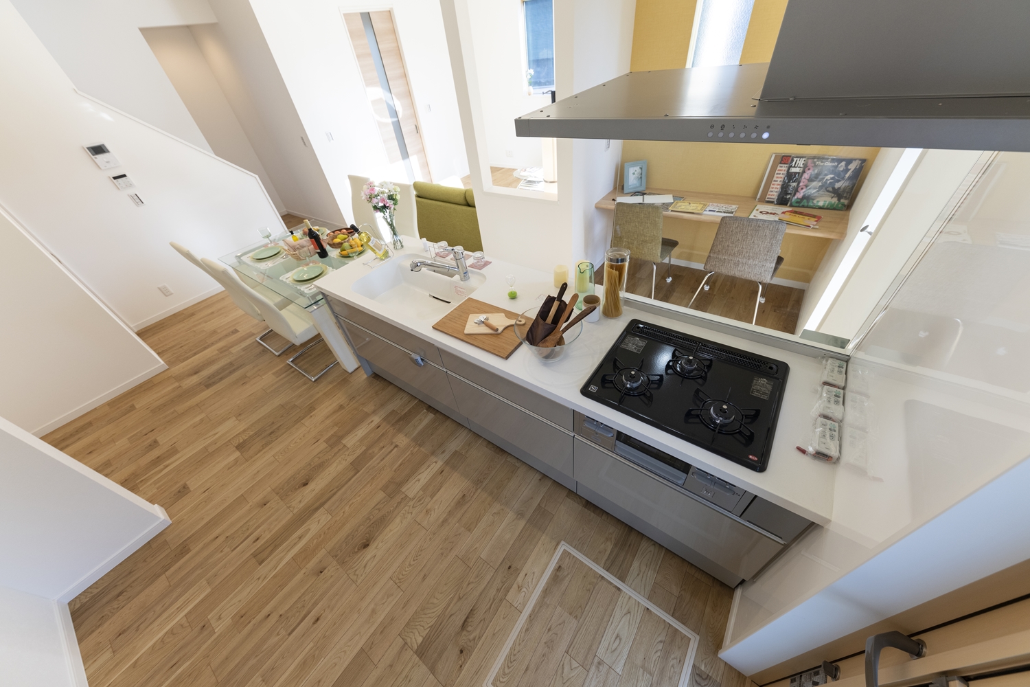 キッチンからは、リビングにいるパパや、スタディーコーナーで宿題をするお子様との会話を楽しめます♪