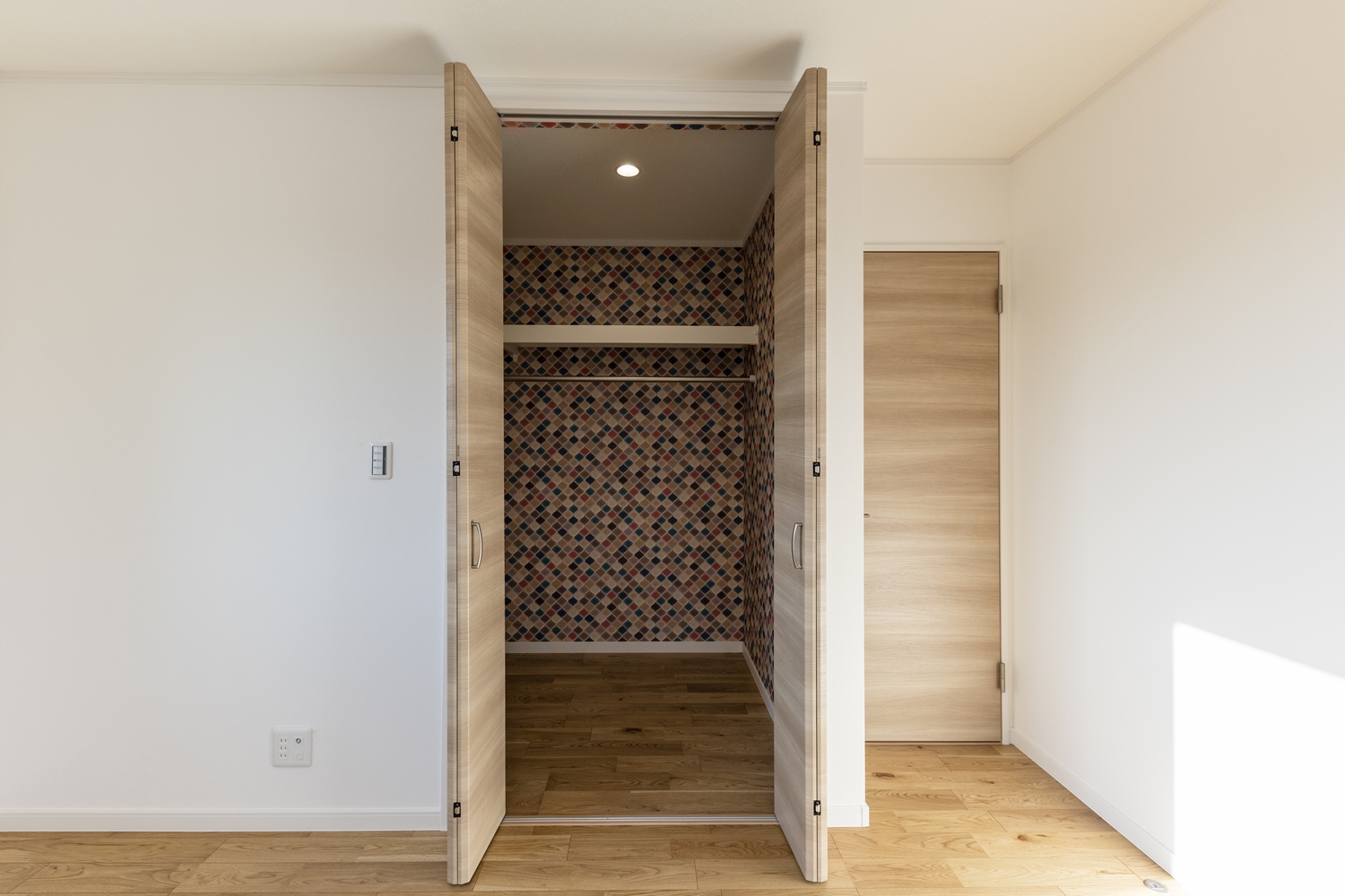 ウォークインクロゼット/おしゃれなデザインのクロスを施しました。収納が楽しくなりそうです♪