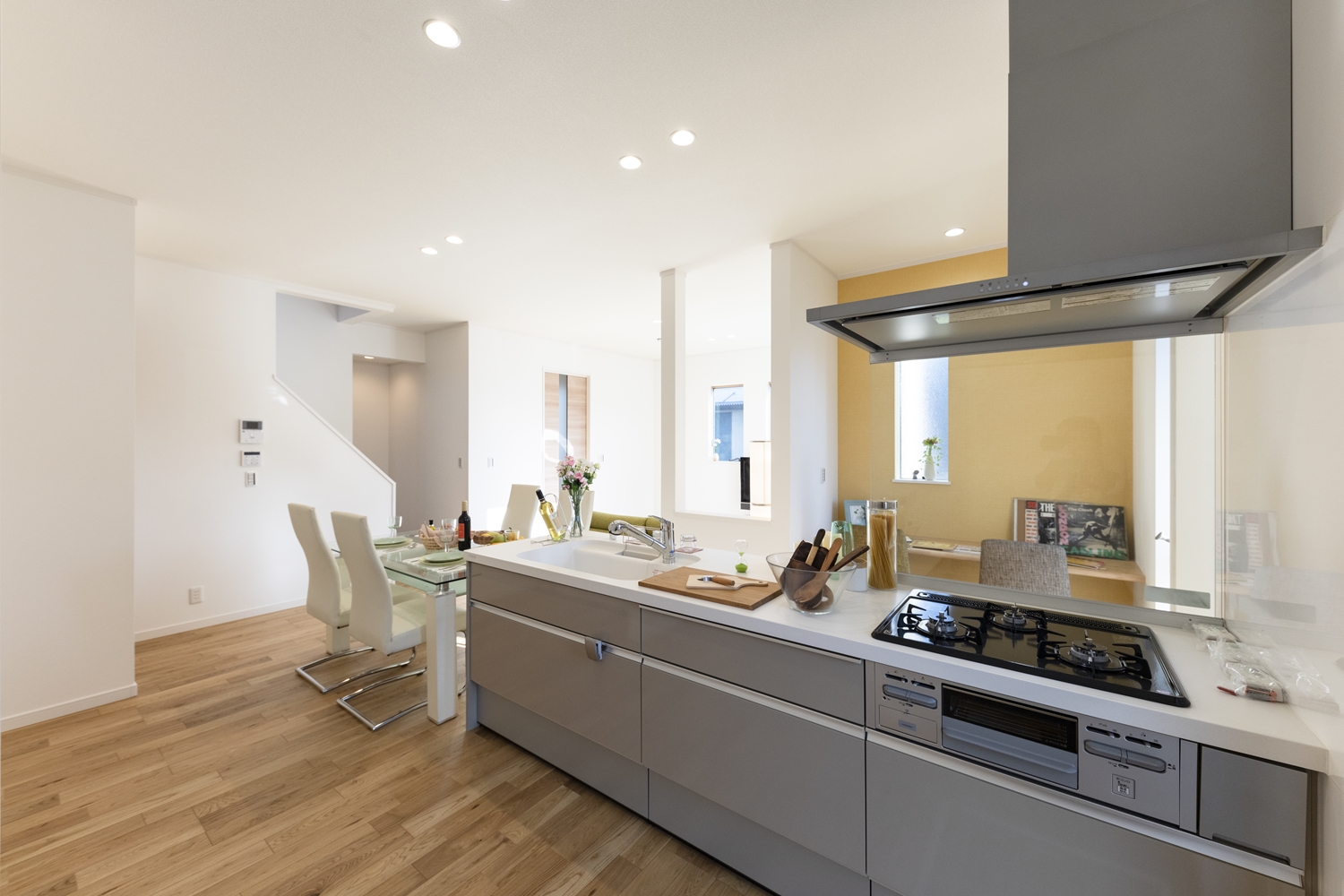 キッチンとダイニングテーブルを一体化して、料理を作る人も食べる人も一緒に楽しむことができます♪