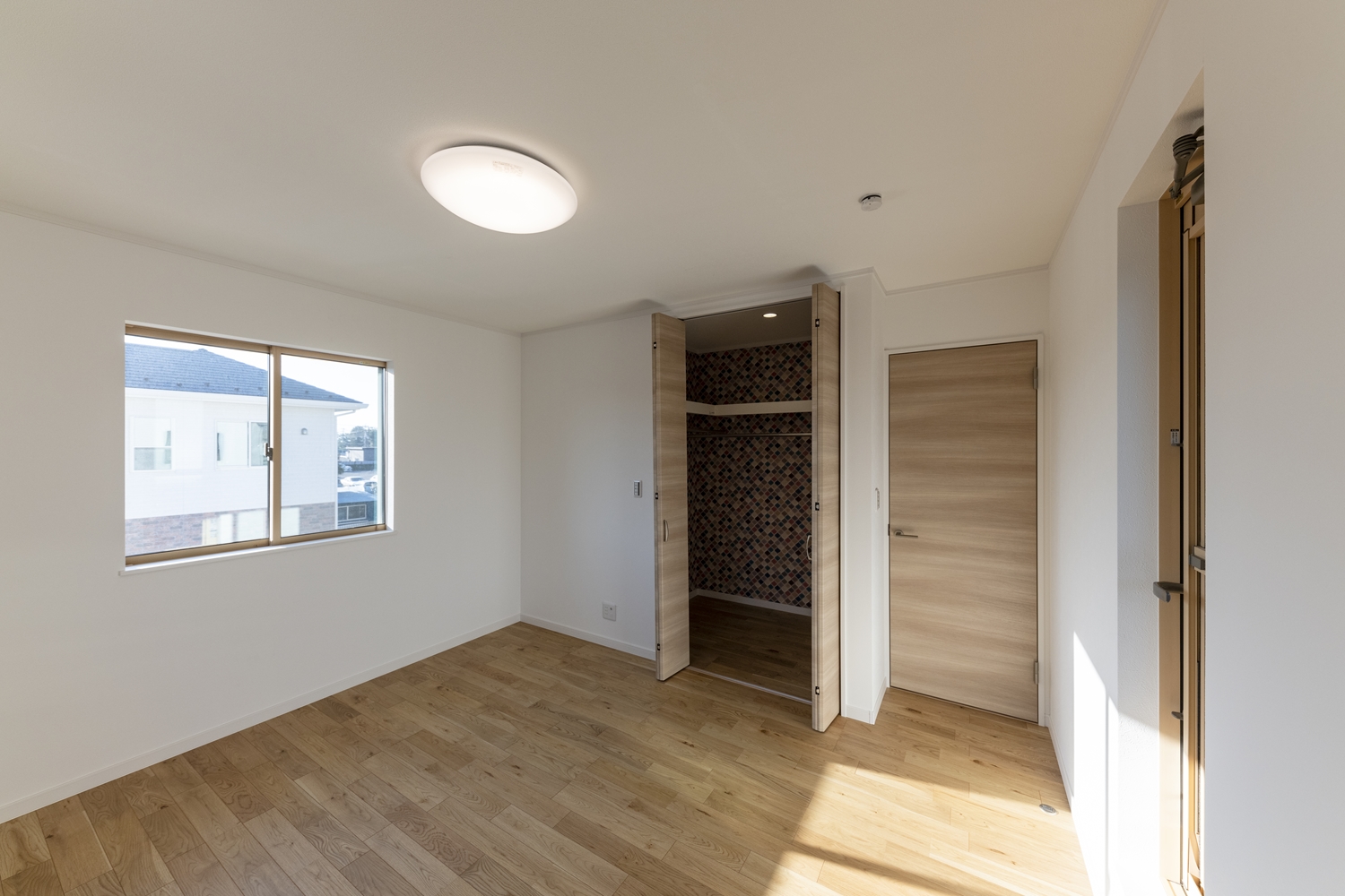 2階洋室/しっかりした木目、特徴的な柾目の斑紋が正統を印象づける「オーク」のフローリングがナチュラルな空間を演出。
