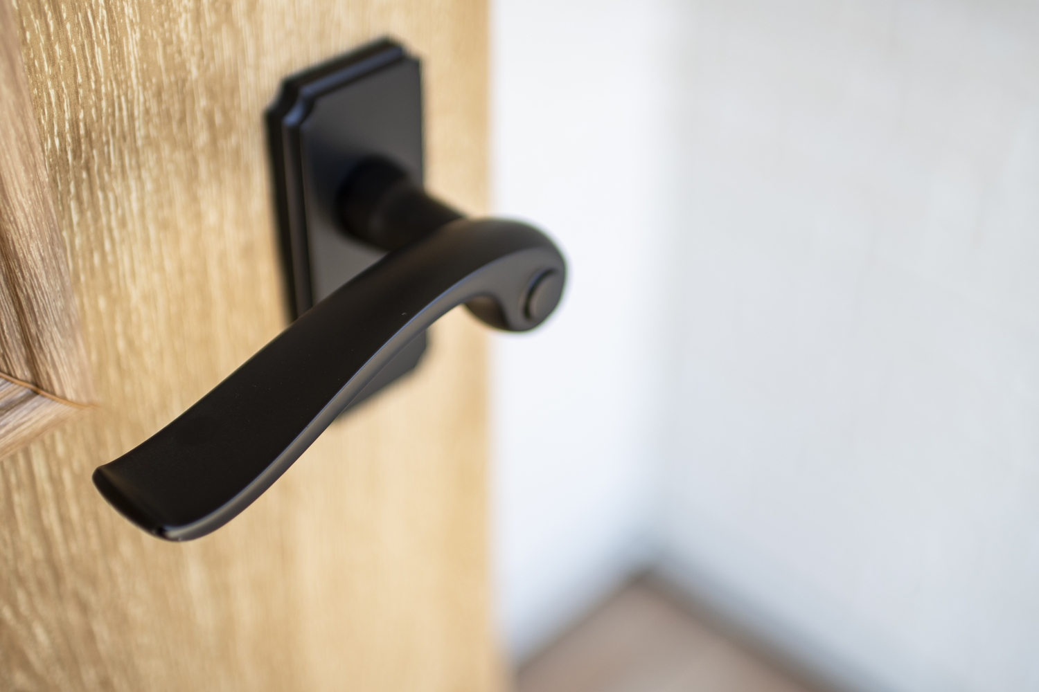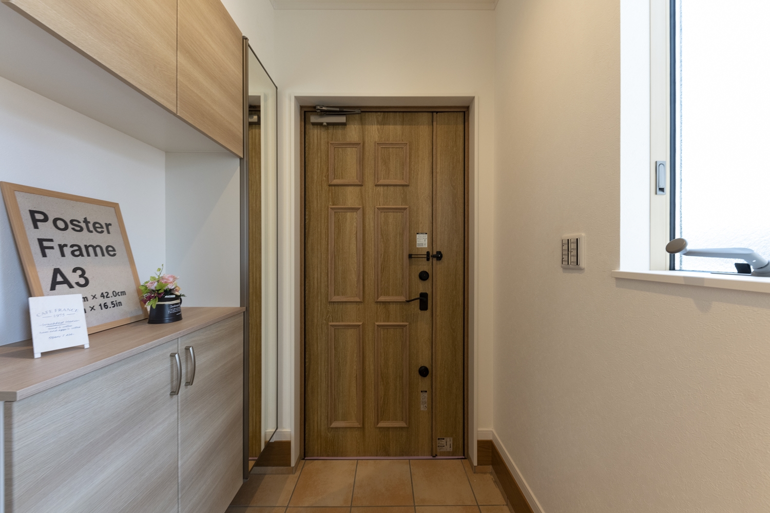木目調のドアに、マットブラックのハンドルを施して、メリハリをつけました♪