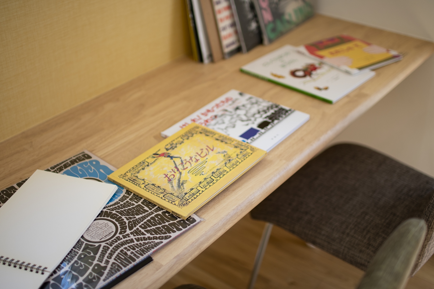 スタディコーナーやミセスコーナーとして利用できるカウンターを設置しました。オレンジ色のアクセントクロスが空間を彩ります。