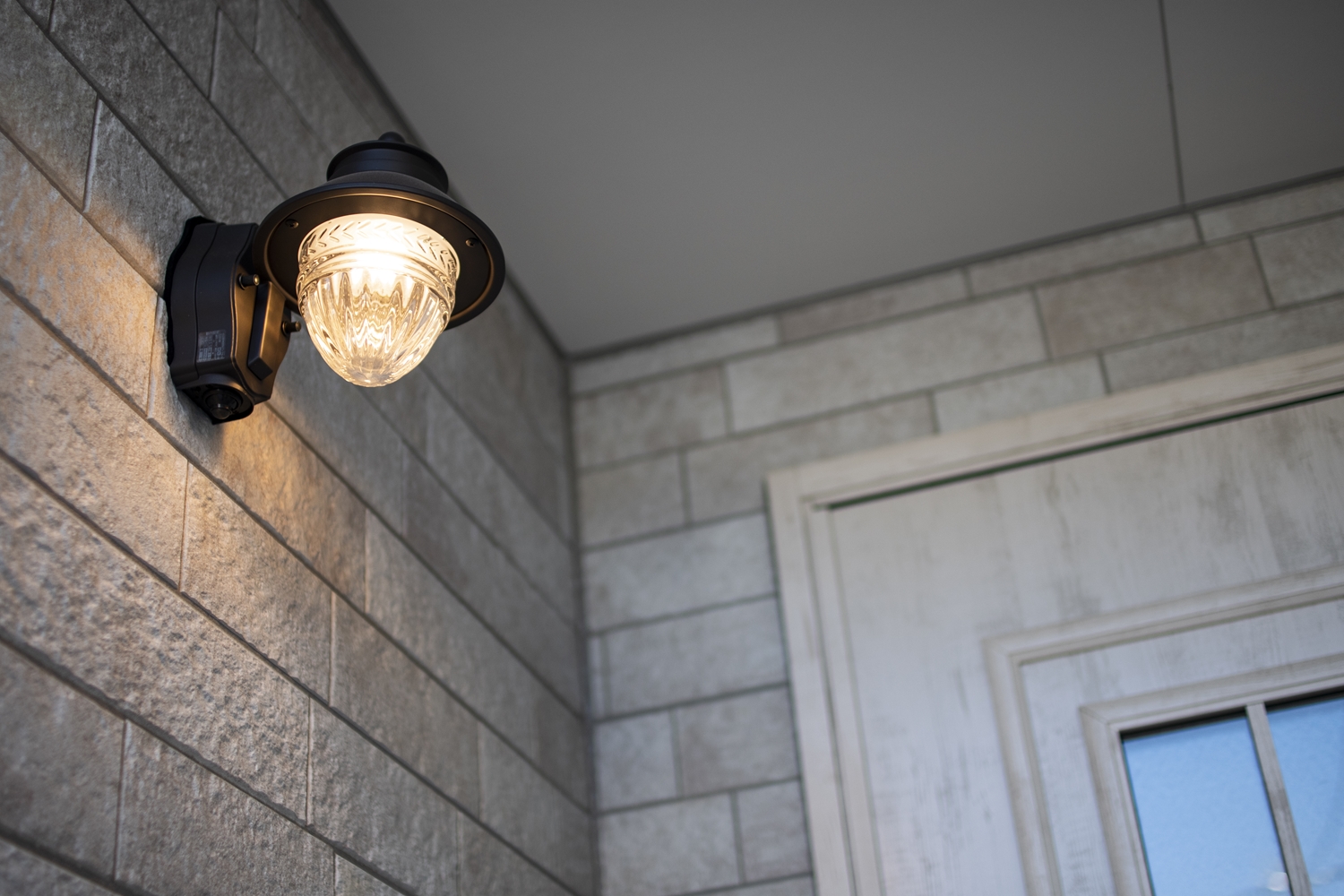 お洒落なアンティーク調のポーチライトがエントランスを彩ります。