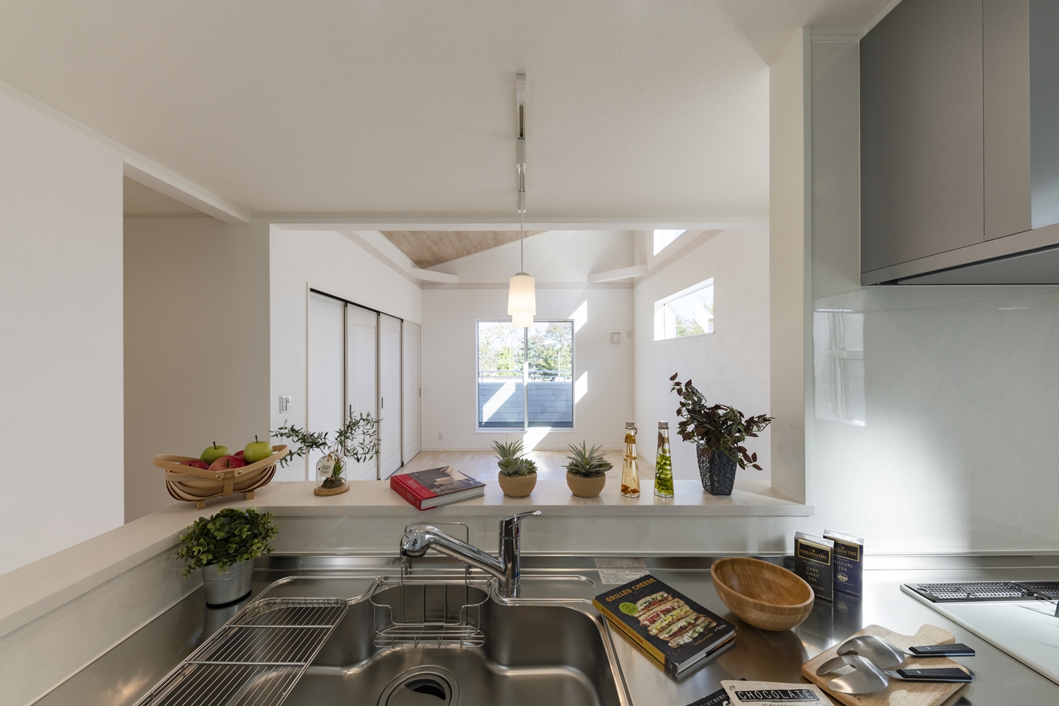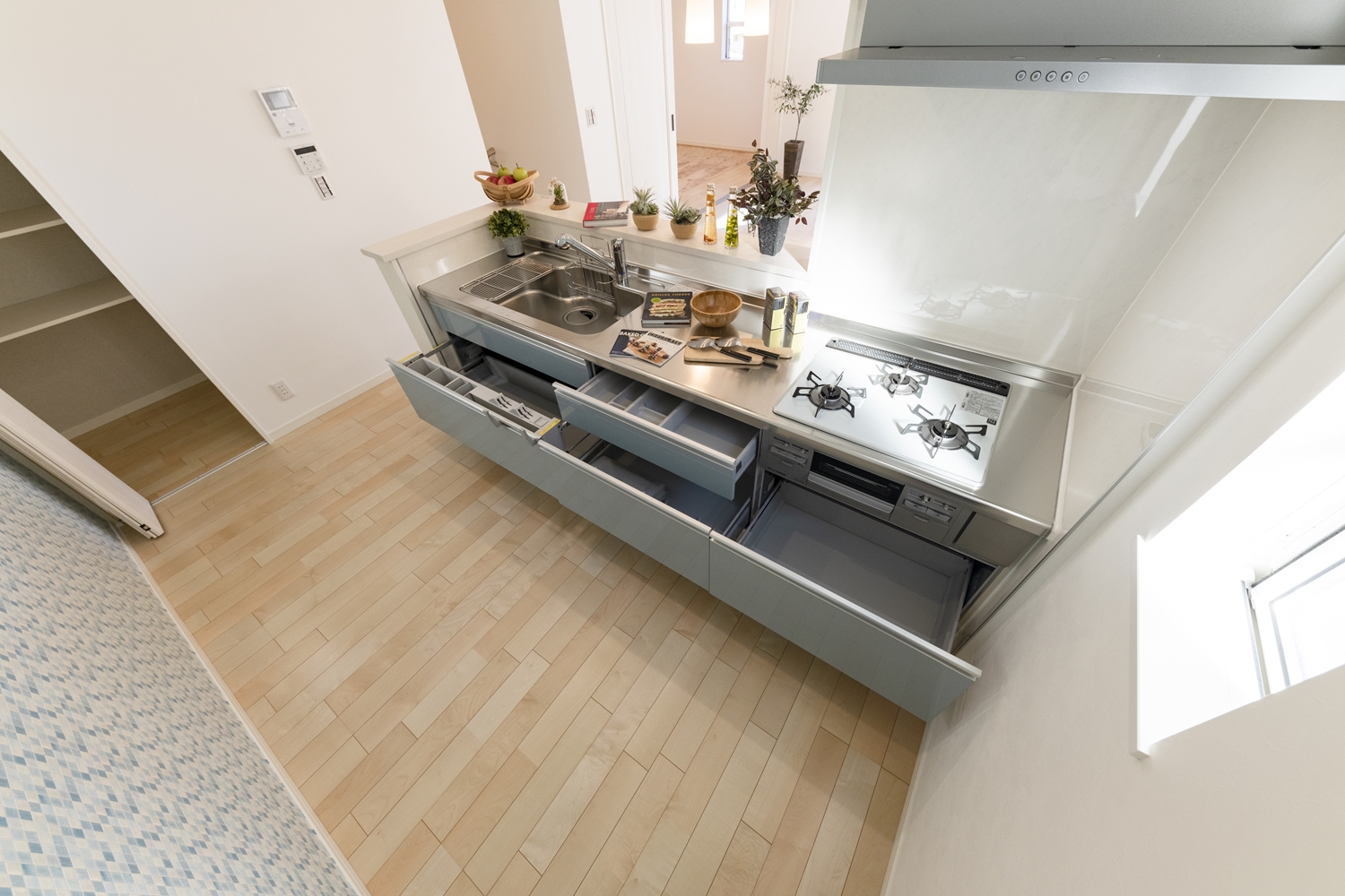 キッチンからリビング全体を見渡せて、お子様にもすぐ目が届くので安心してお料理ができます。