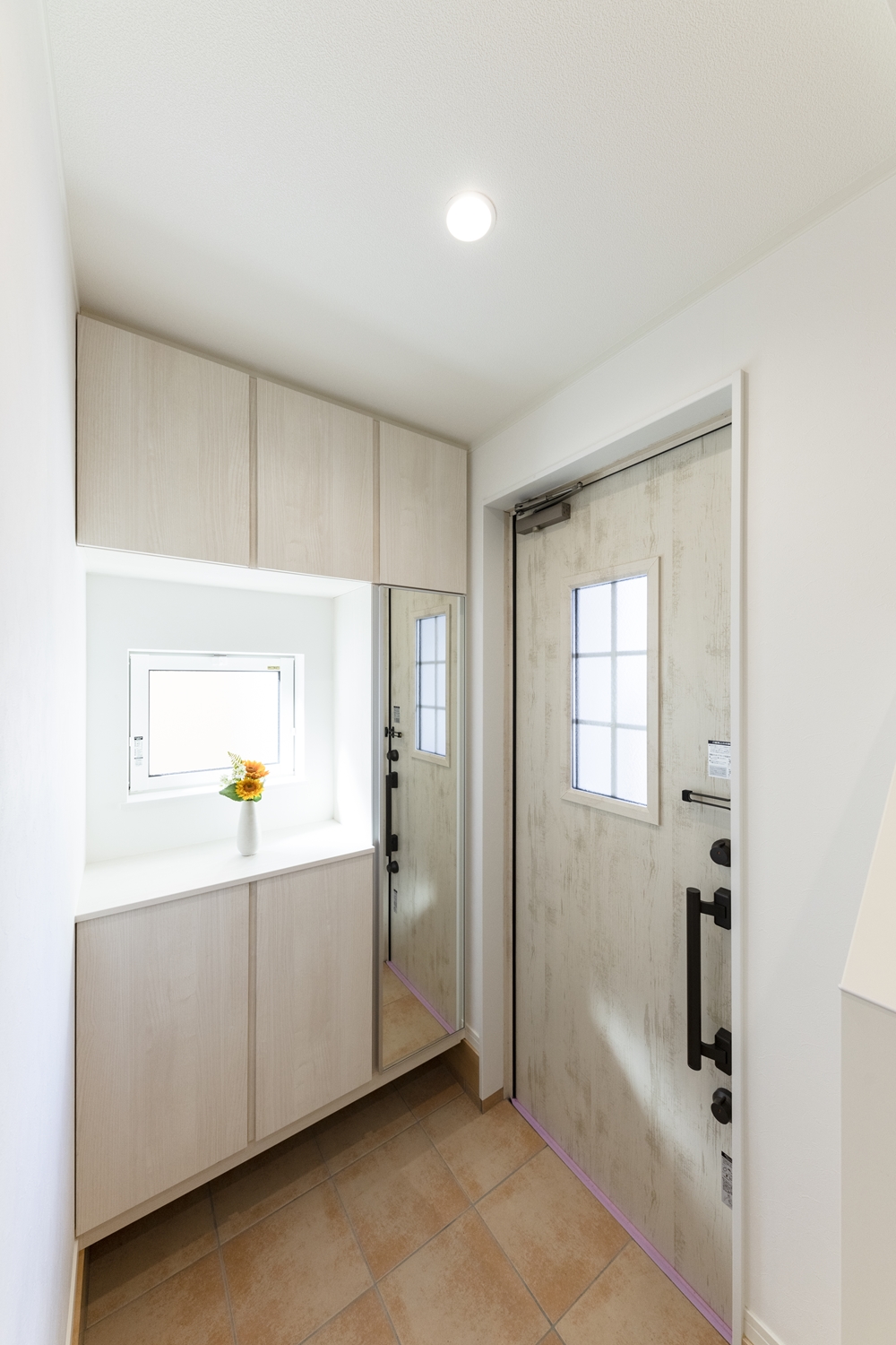窓から自然光が差し込む、明るい玄関。気持ち良くお客様をお迎えできます。