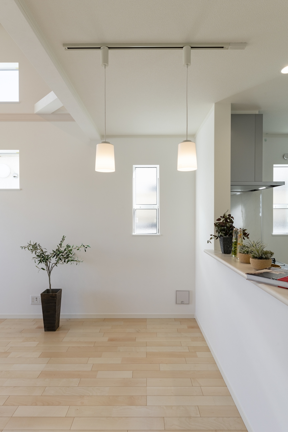 ペンダントライトの柔らかな光が、ダイニングをやさしく照らします。