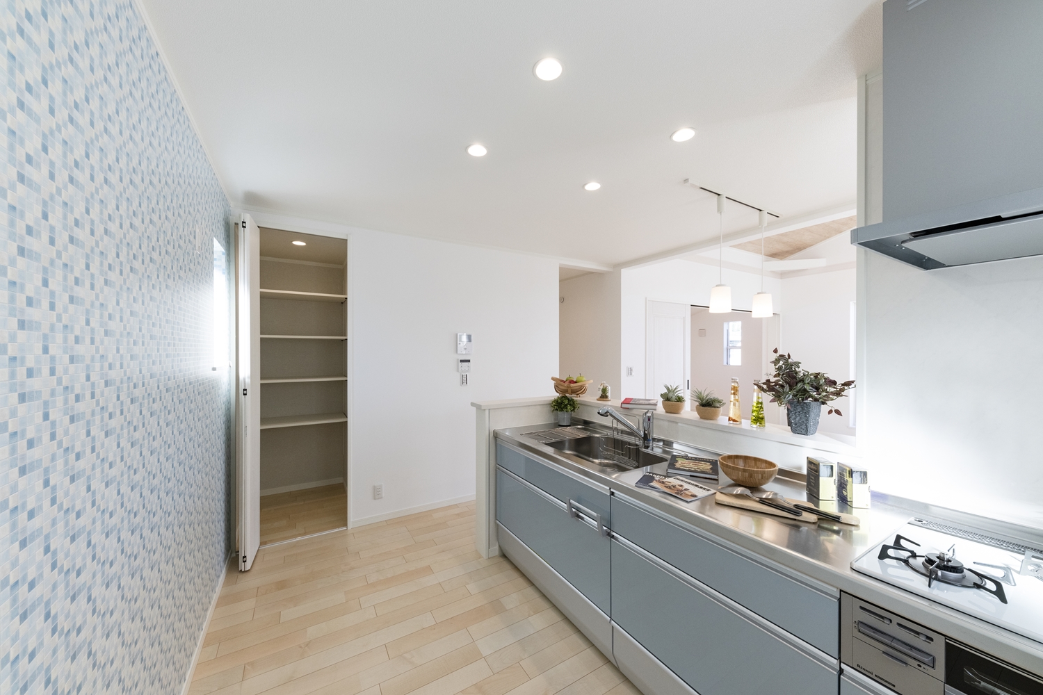 広々とした、ゆとりのあるキッチンスペース。キッチン脇のパントリーは備蓄や場所をとるキッチン家電の保管にも便利です♪