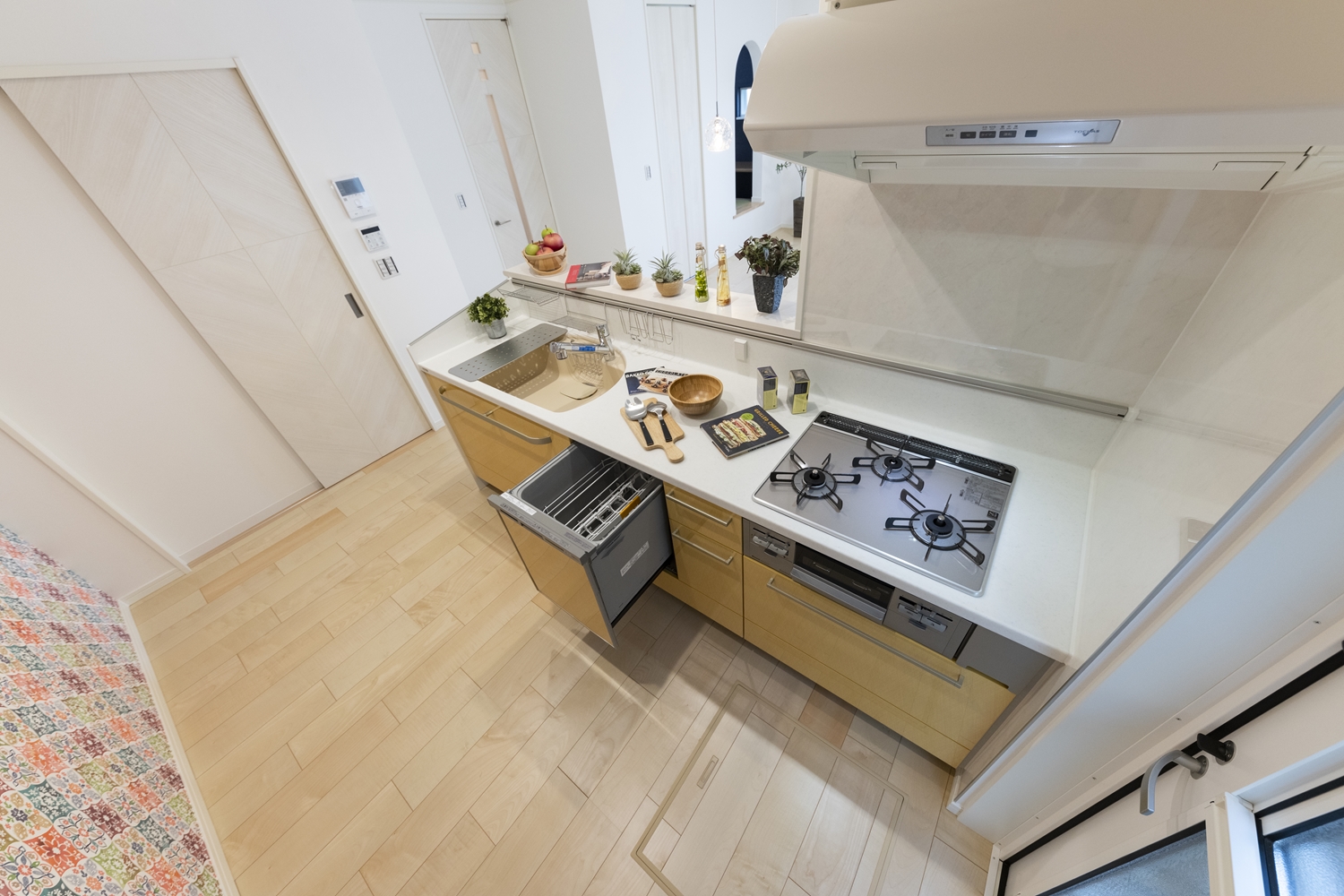 リビングを見渡せる対面キッチンはお料理をしながらでもご家族との会話を楽しめます。
