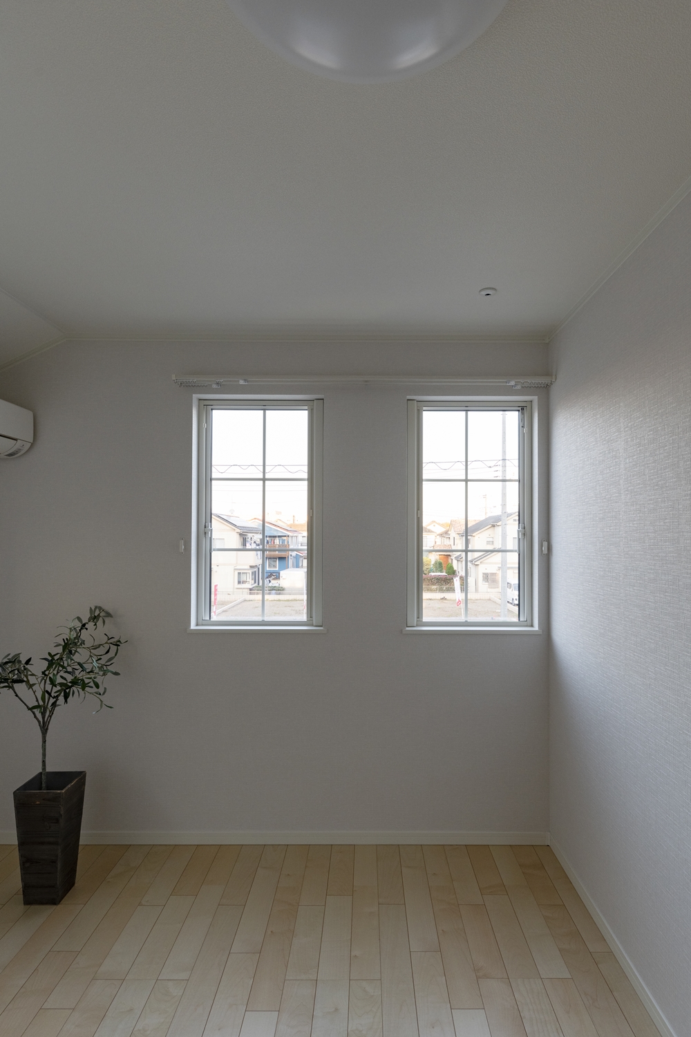 2階洋室/オシャレな格子窓が、さわやかな風を室内へと誘います。