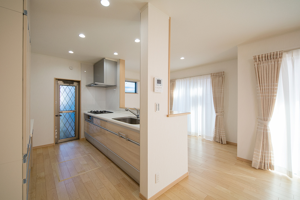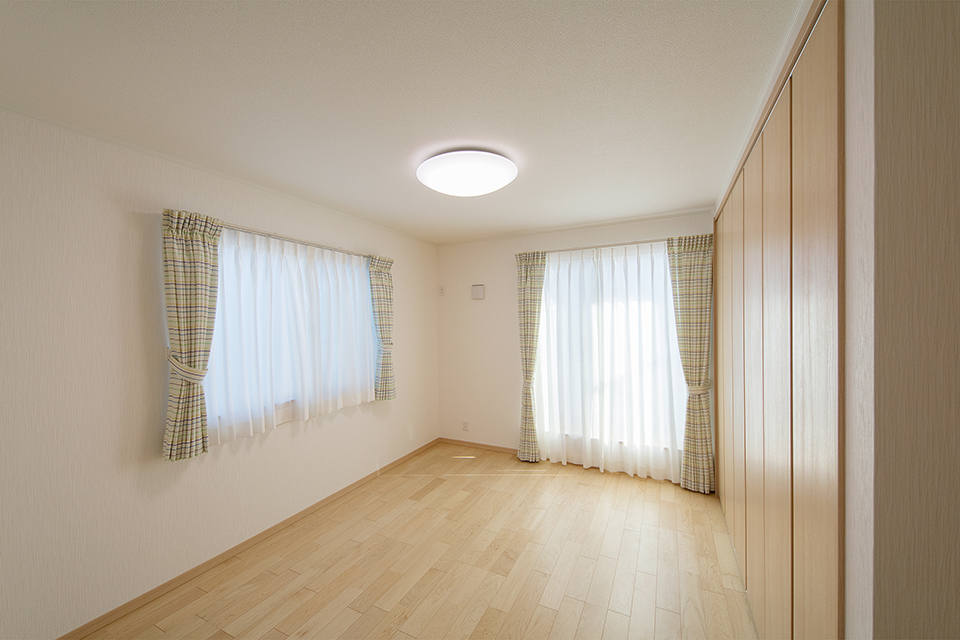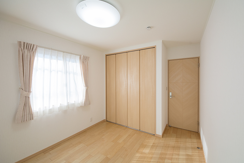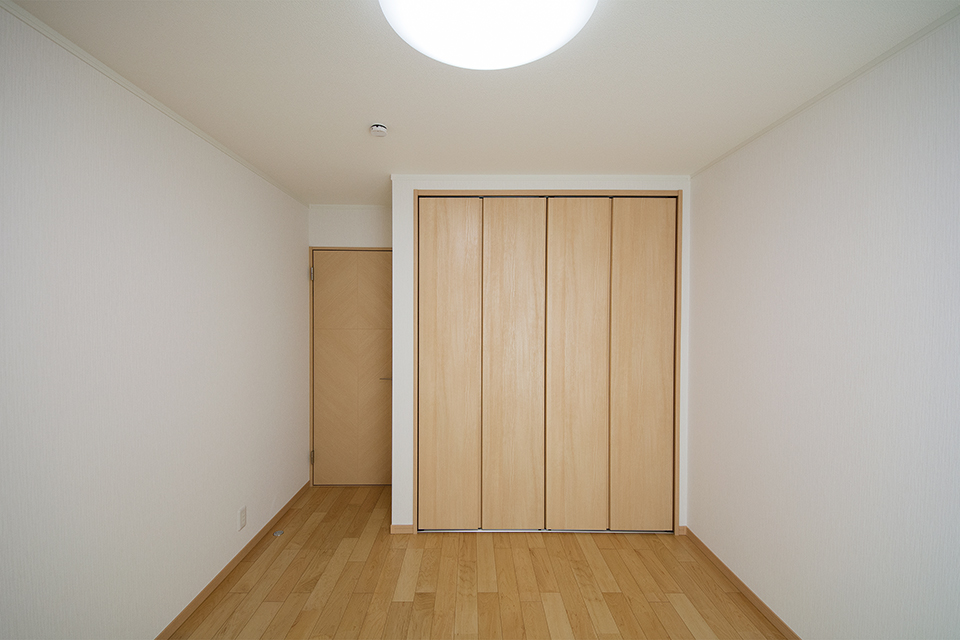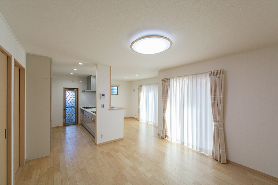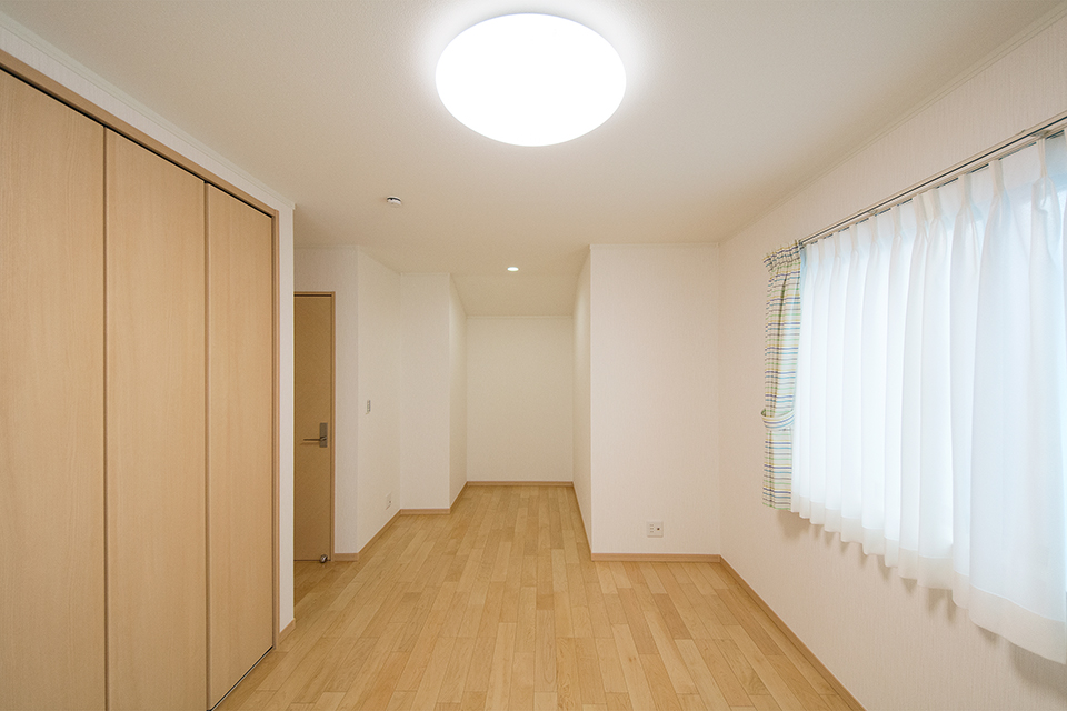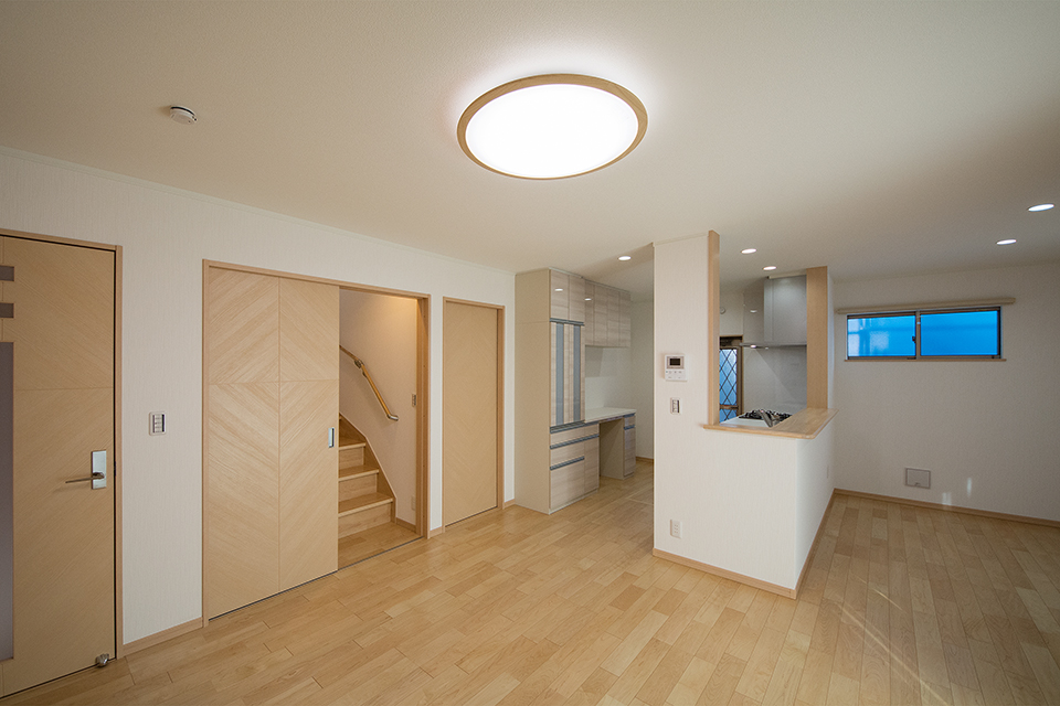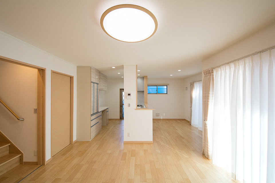 ナチュラルな風合いのメープル色の床材と白のクロスが心地よい空間を演出。