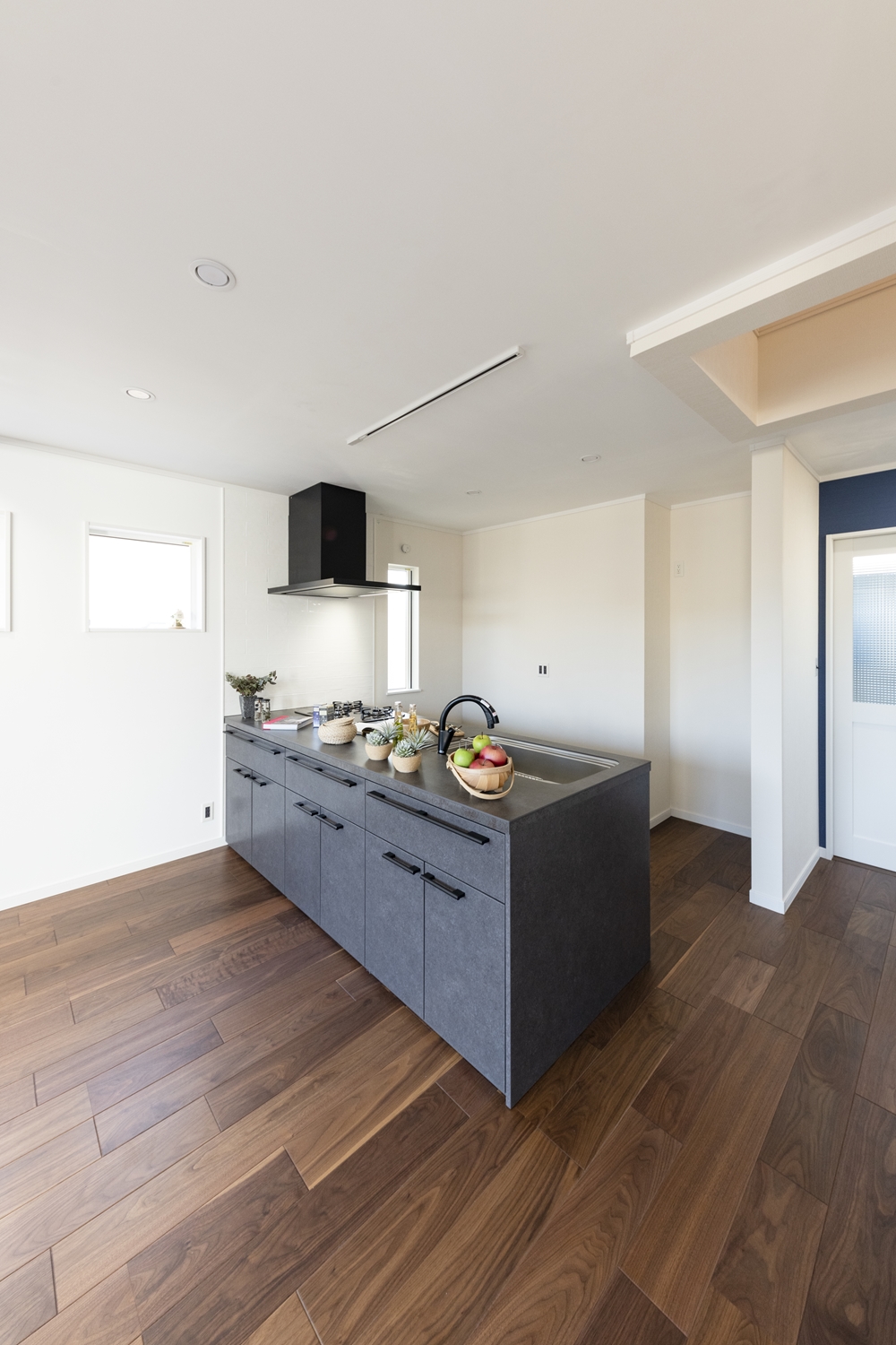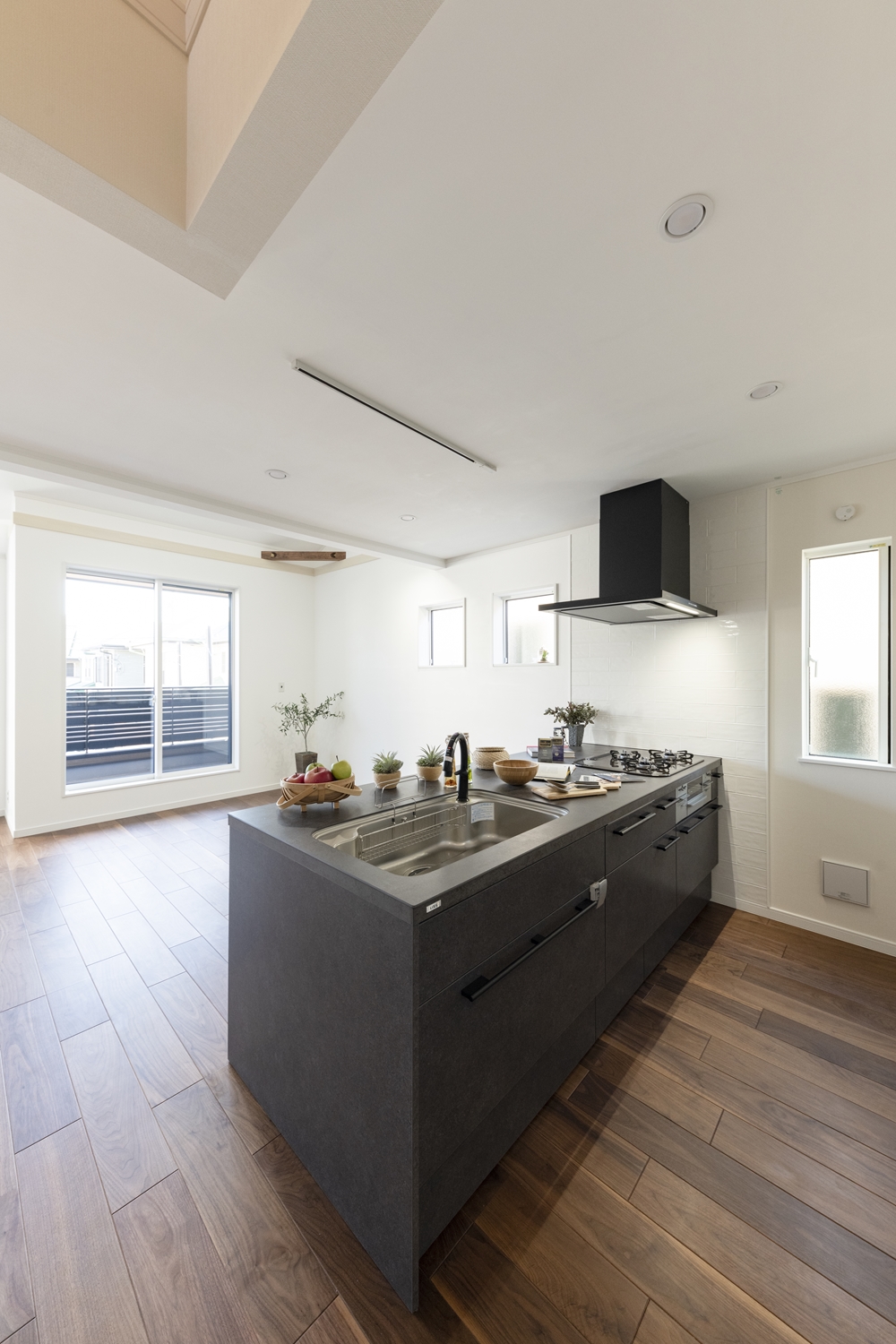 キッチンと住まいが一つのつながりになって暮らしにフィット。優しい風が通り抜ける心地よい場所。