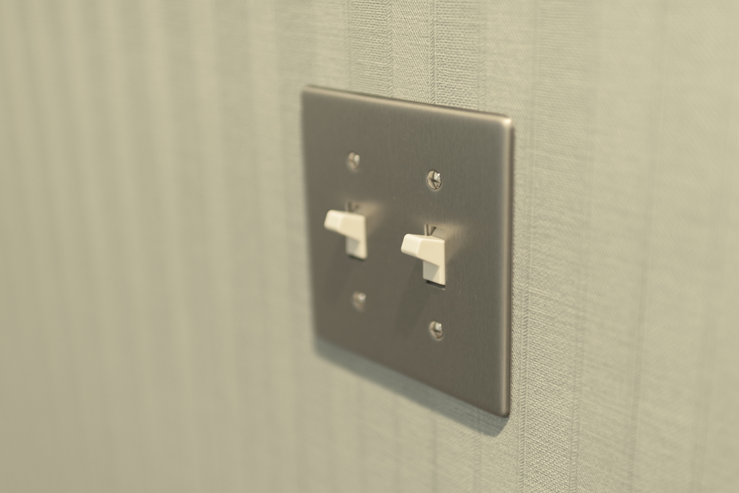 照明スイッチにもこだわりを!各お部屋にアメリカンスイッチを設置しました。