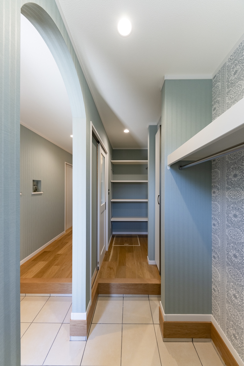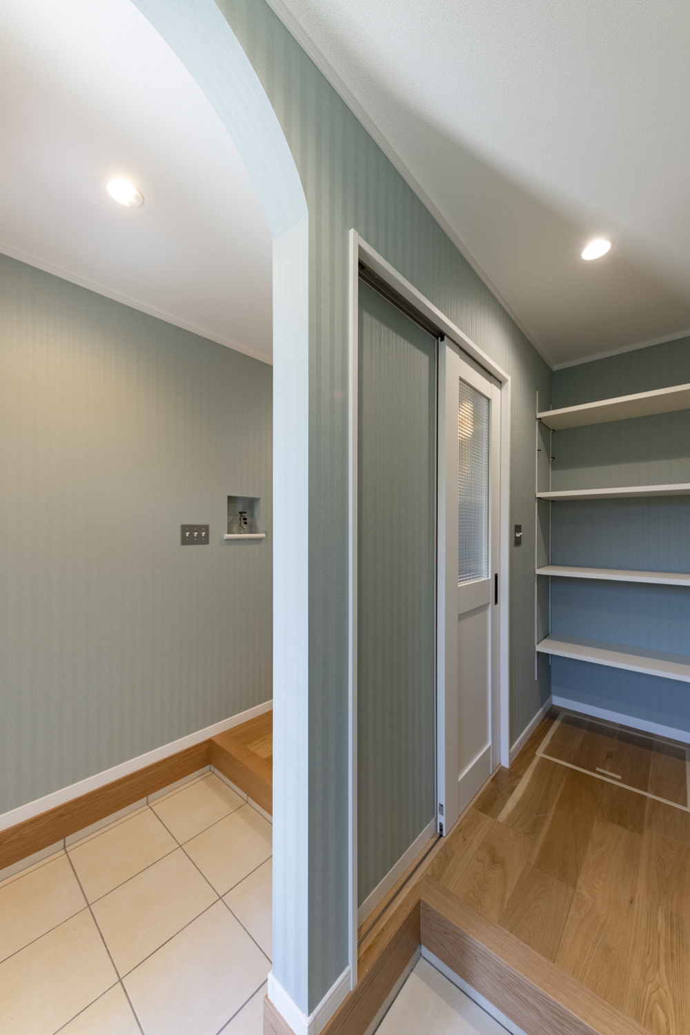 ファミリーエントランスとゲストエントランスに分けることにより、急な来客でもいつでもキレイな玄関に♪
