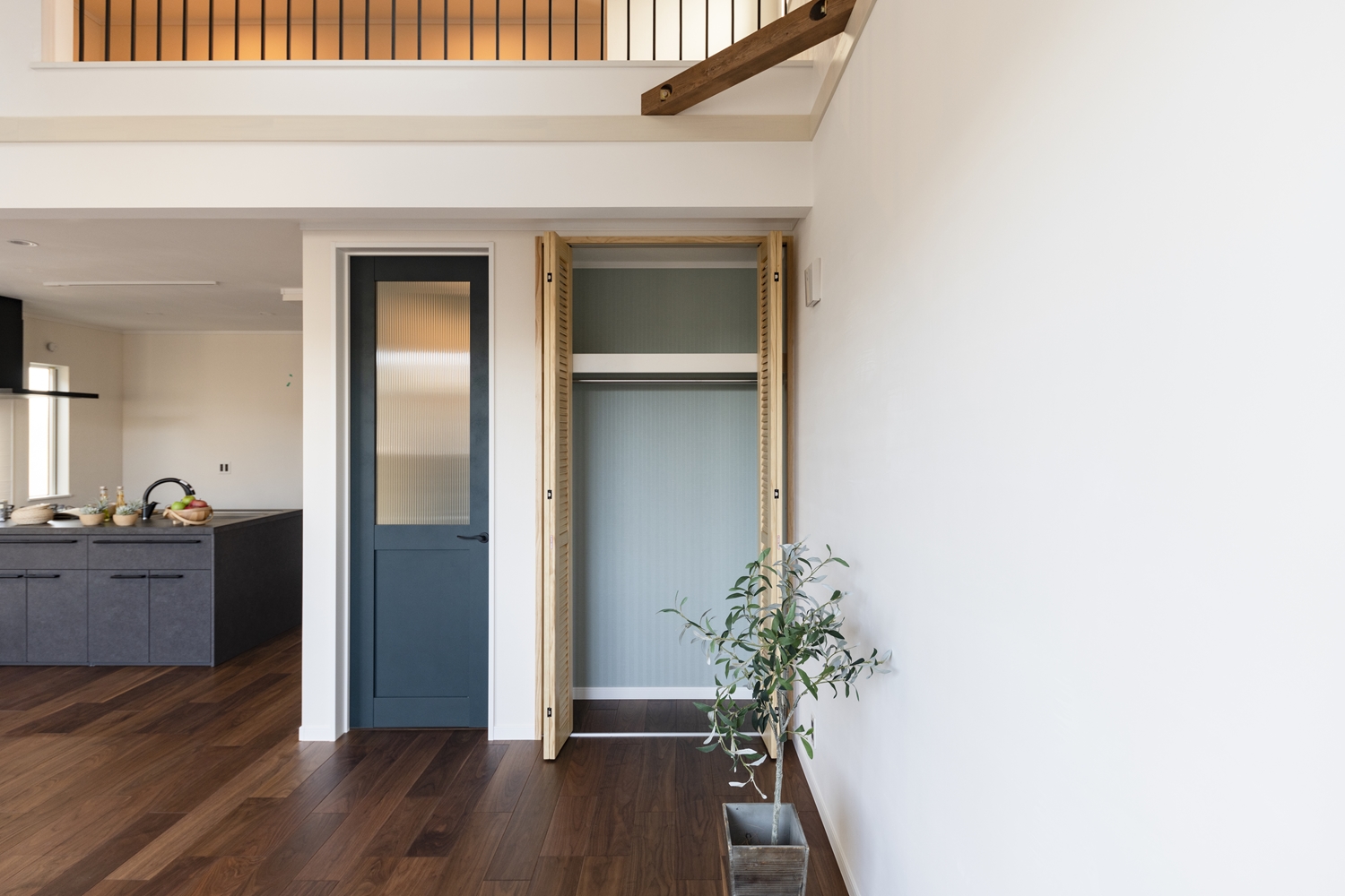 突然の来客でもサッと物をしまって瞬時にきれいに!こもりがちな空気を換気することができて機能的なルーバー折れ戸のクロゼット♪