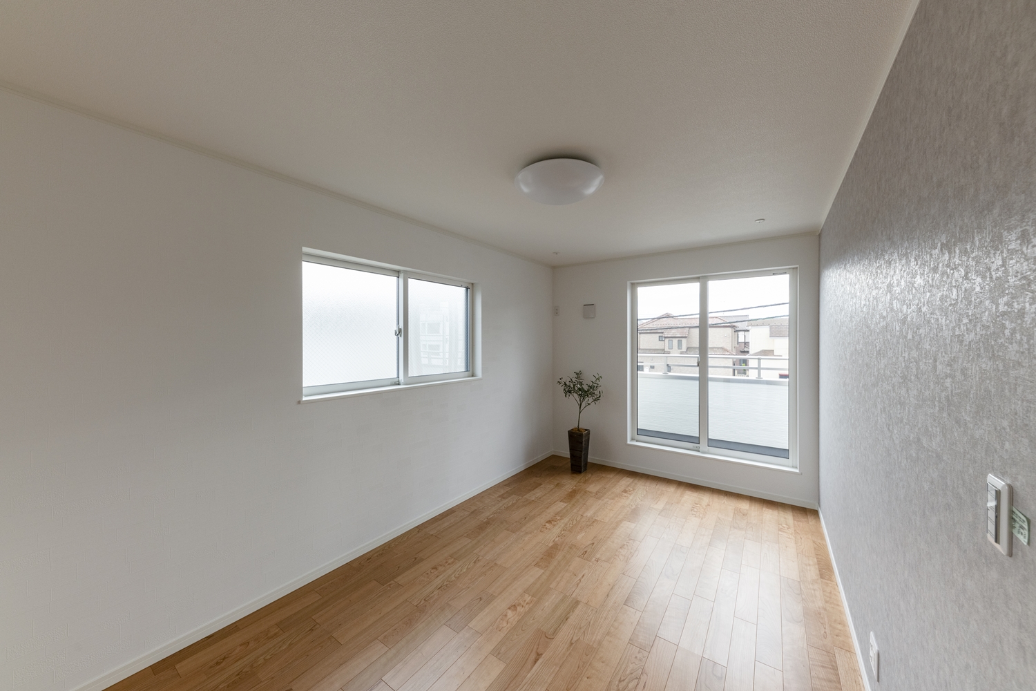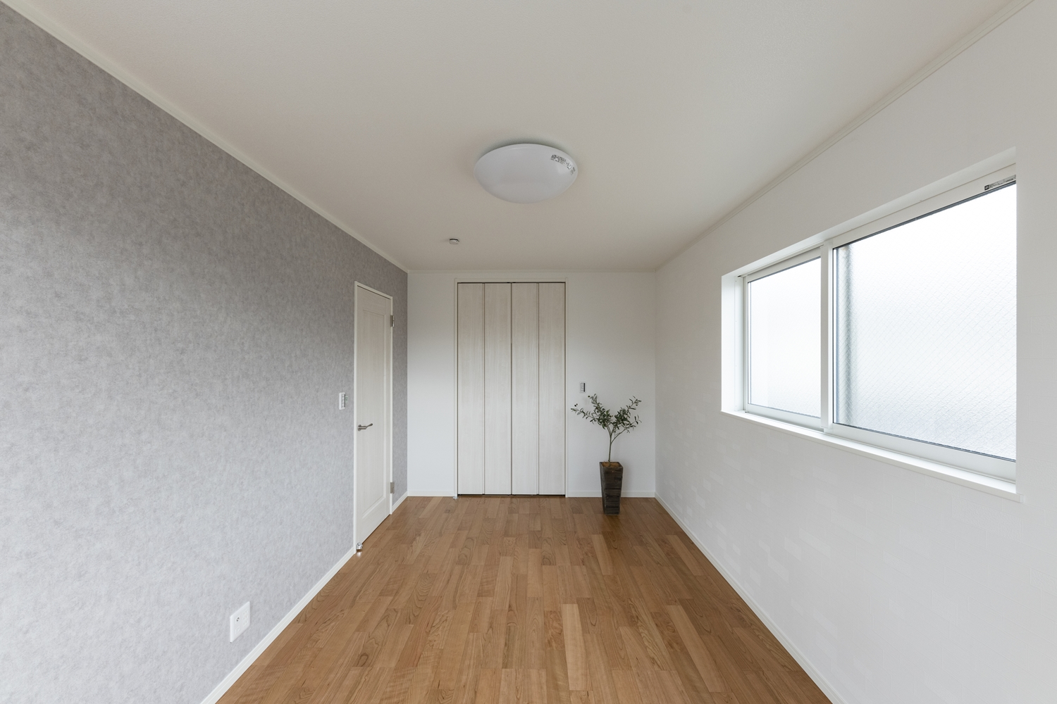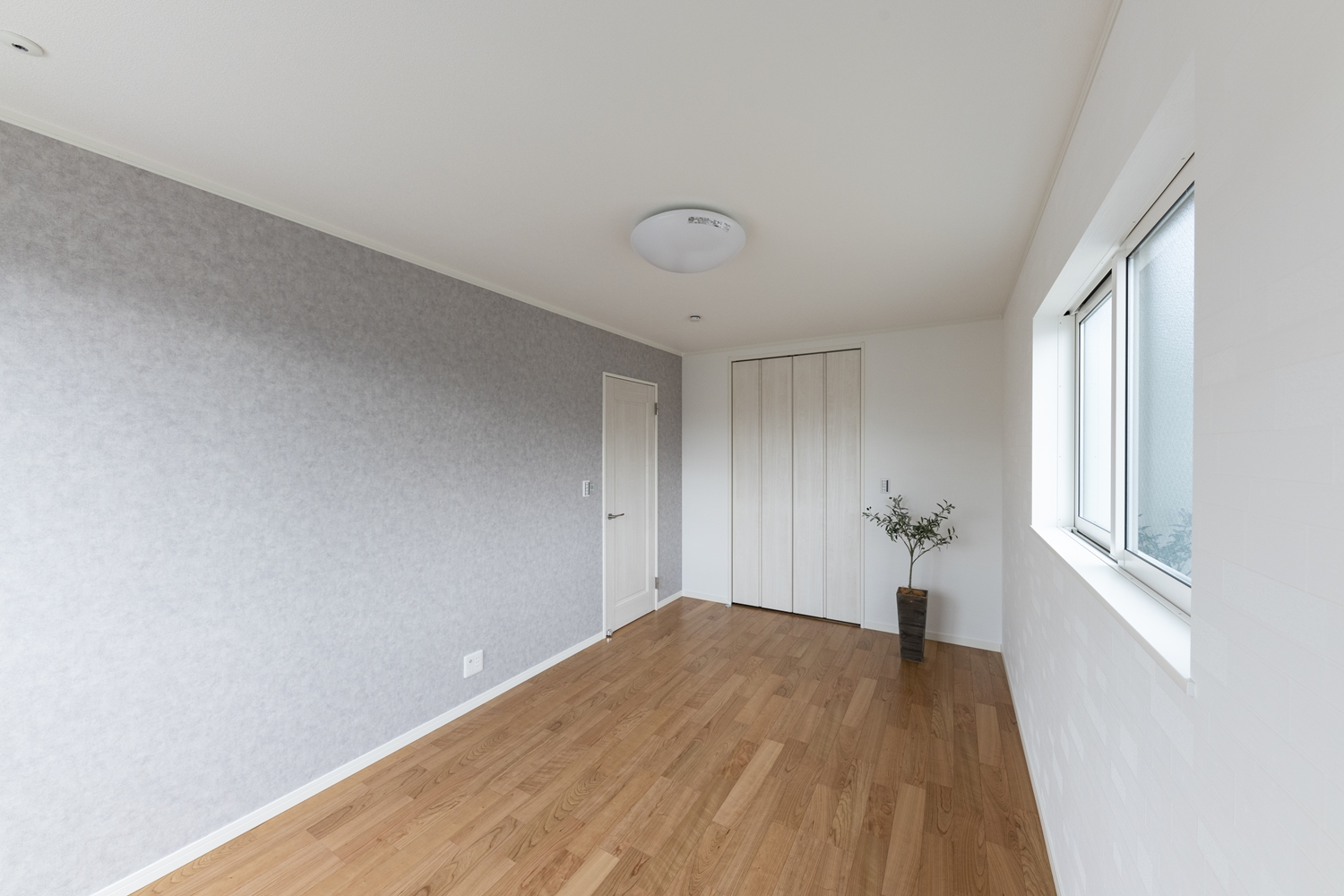 2階洋室/淡いグレーのクロスと白いタイル調クロスをアクセントにして、インテリアを楽しむ素敵なお部屋に。