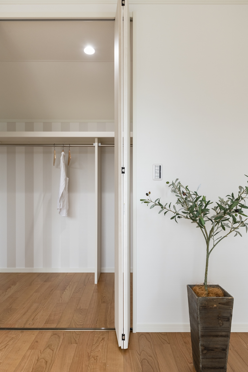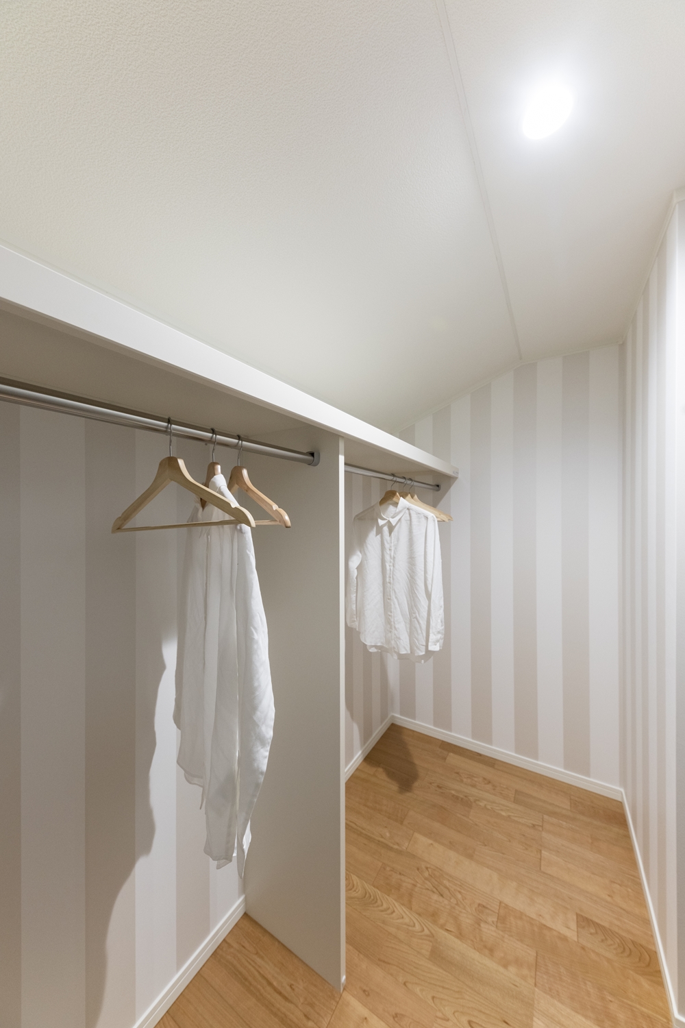 ウォークインクロゼット(2.25帖)/ストライプのクロスをアクセントにしたこだわりの空間で、収納が楽しくなりそうです♪