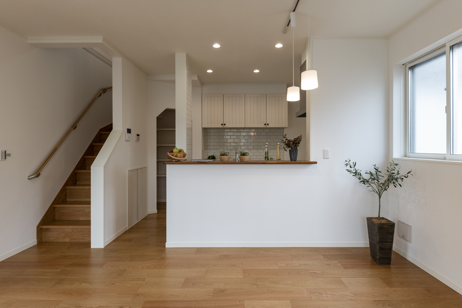 お子様の帰宅が分かるリビングイン階段を採用。「ただいま」や「おかえり」の笑顔が自然と生まれる間取りです。