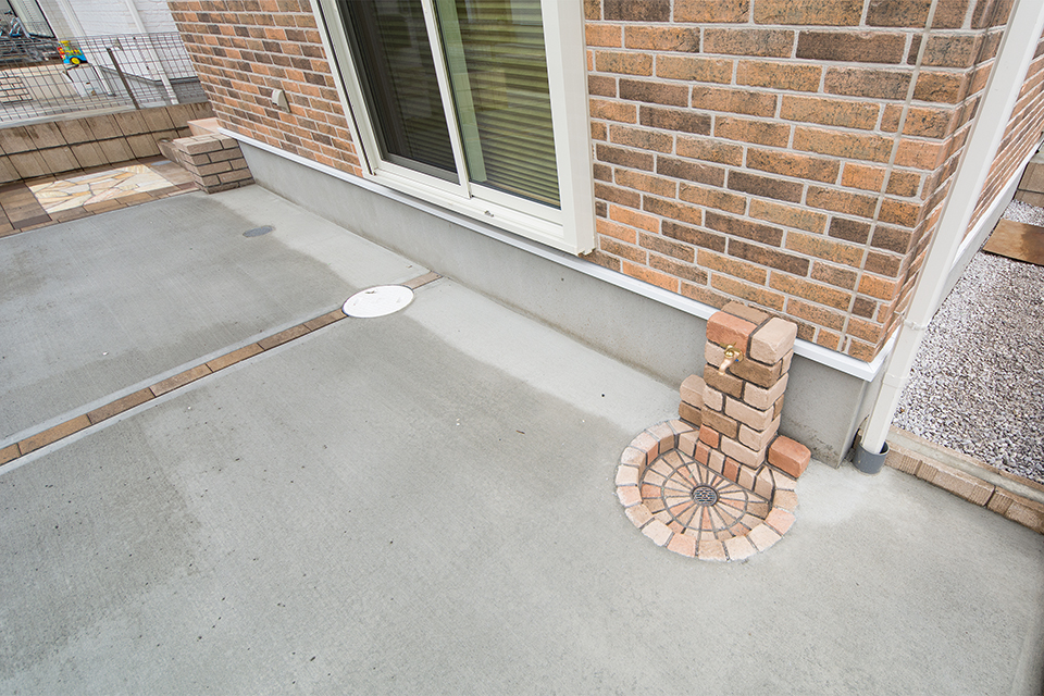 ナチュラルな玄関ドアに、アイアンブラックの把手とオーナメントをしつらえ、アーリーアメリカン調の外観デザインを引き立てます。