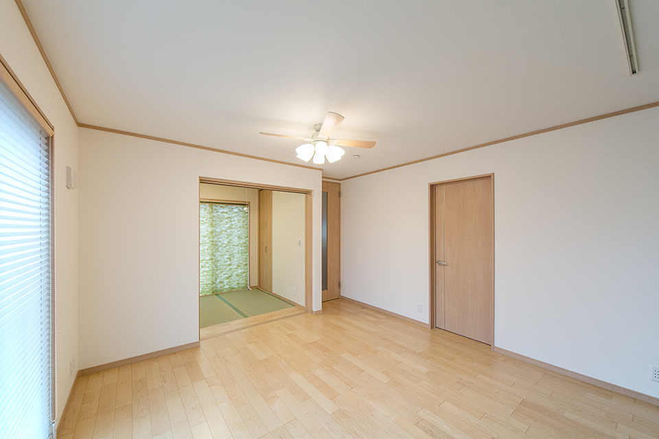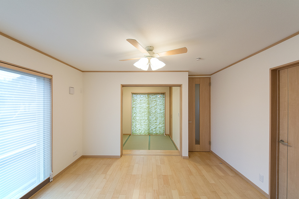 シーリングファンライトを設置し、デザイン性と快適さを両立。