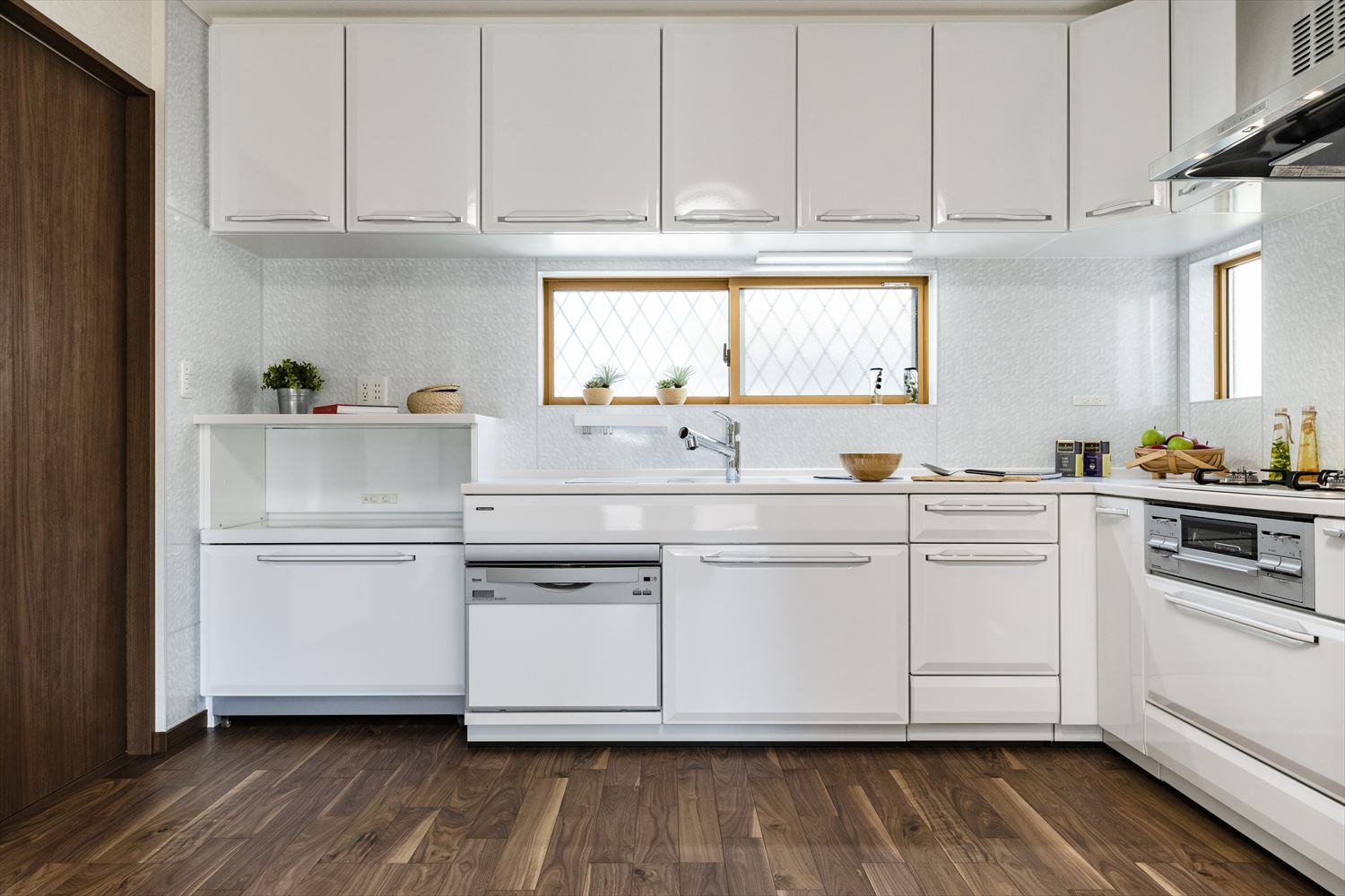 収納豊富なパントリースペース。買い物あとの片づけがスムーズにできます。収納したい物によって自由に高さを変えられるので便利♪