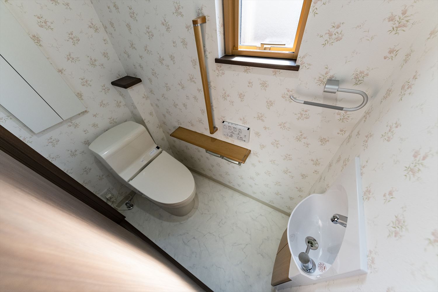 2階トイレ/花柄白いクロスが、さり気なくエレガントに清潔感を演出。