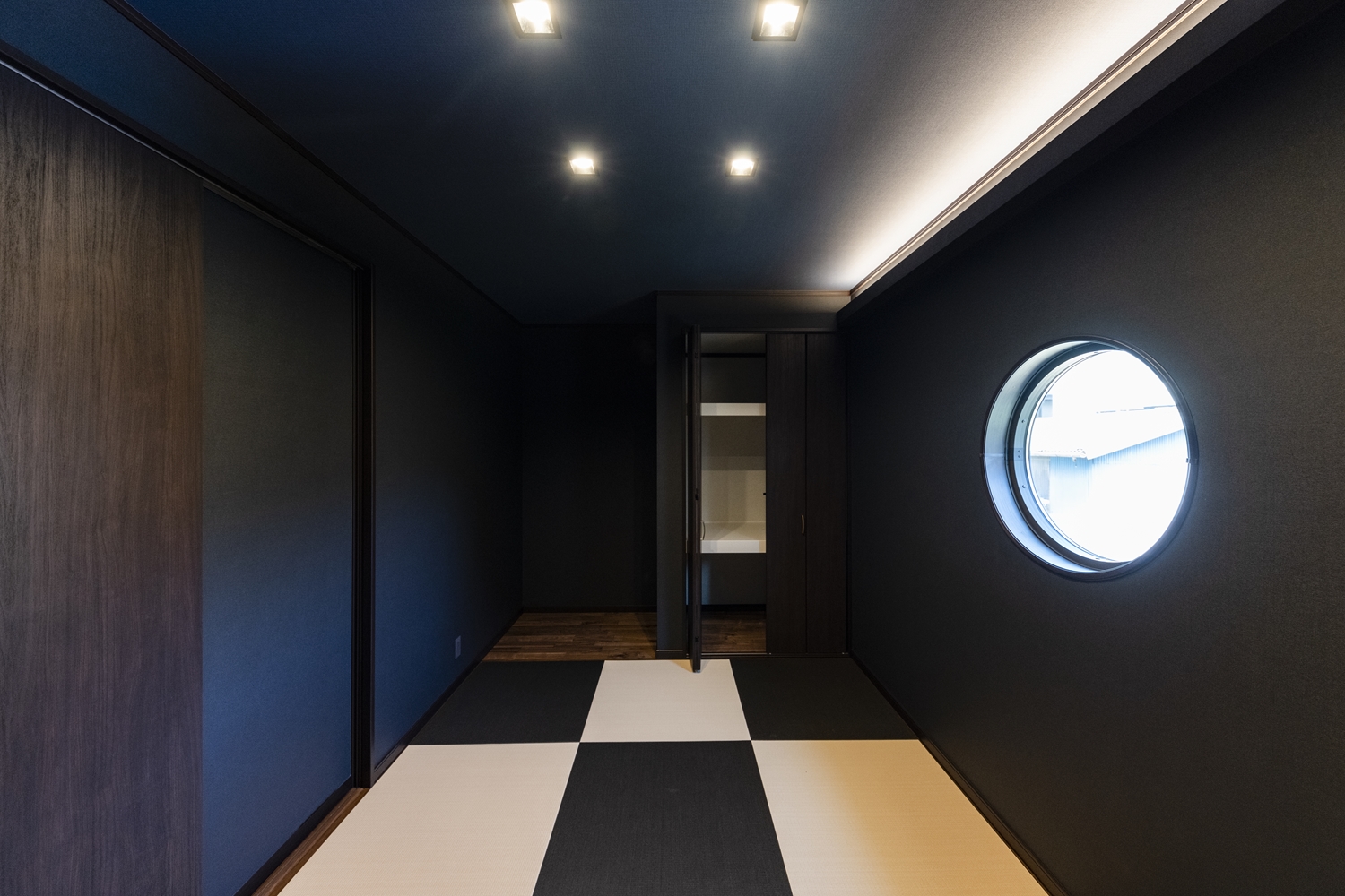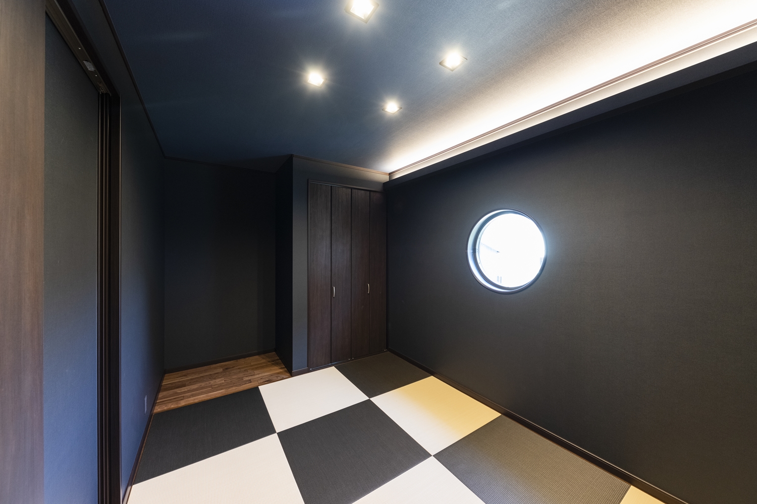 アイボリーとチャコールの畳を市松敷きに。モダンな印象に仕上がりました。