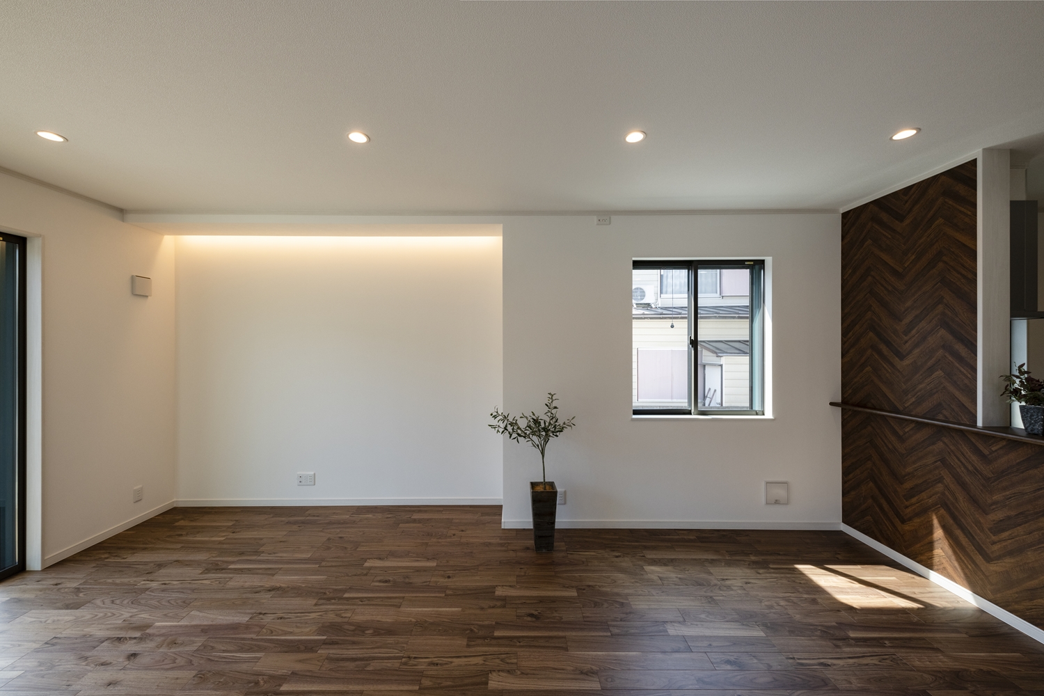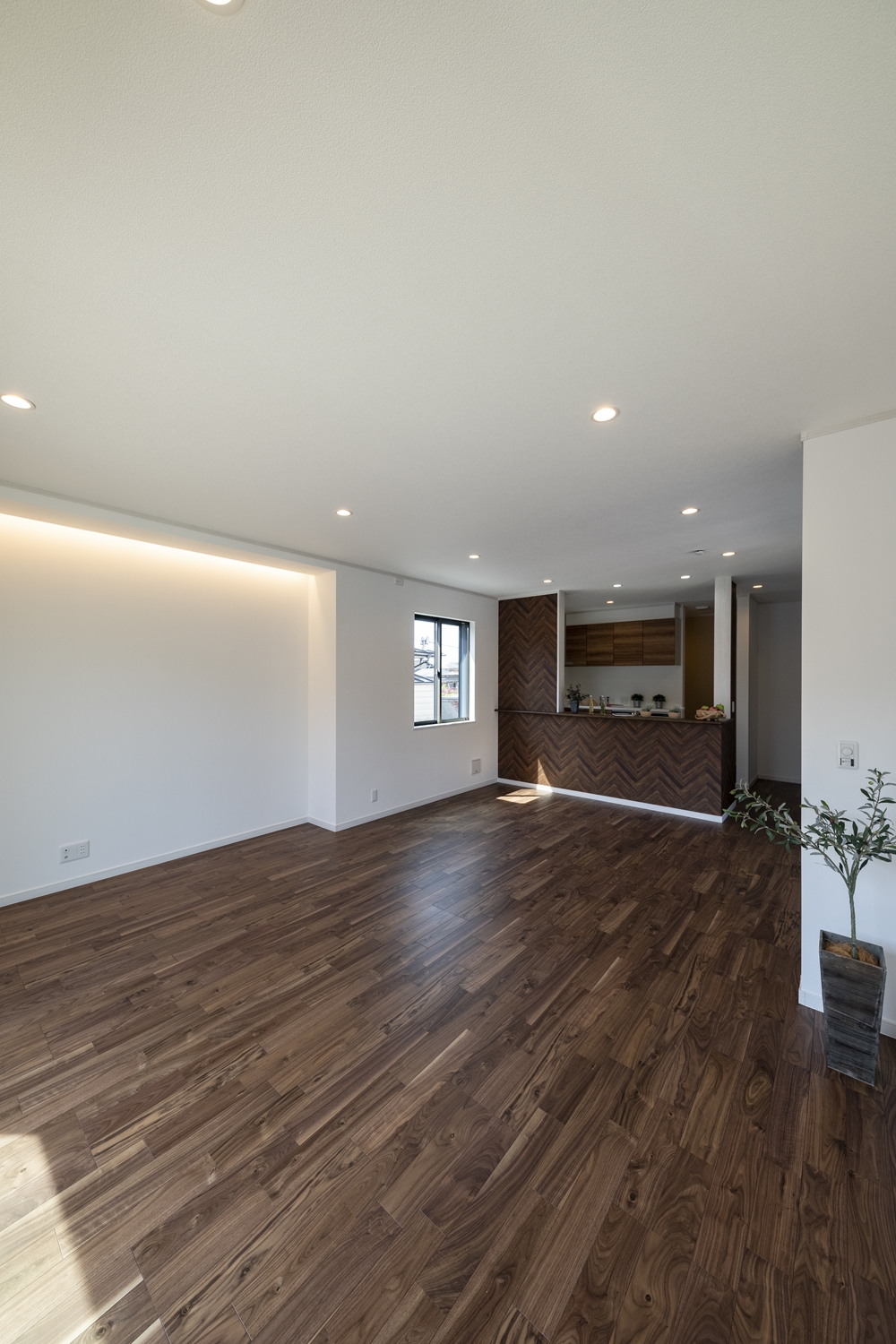 ナチュラルモダン埼玉県入間市30坪以上玄関土間、2階リビング、LDK20帖以上、勾配天井、アイランド/ペニンシュラキッチン