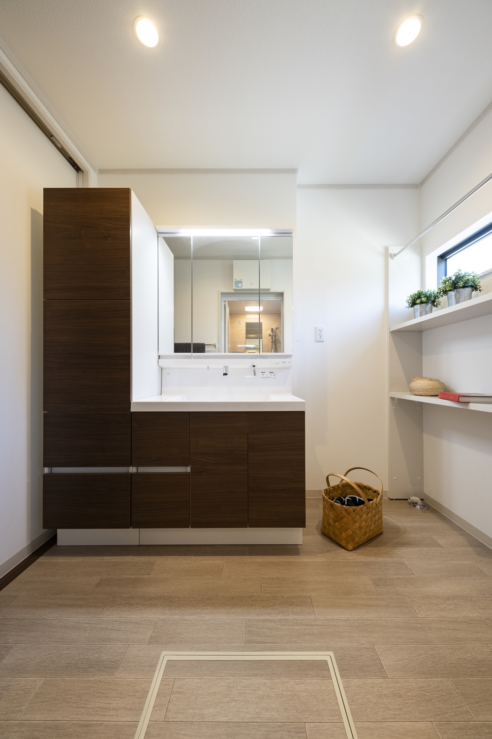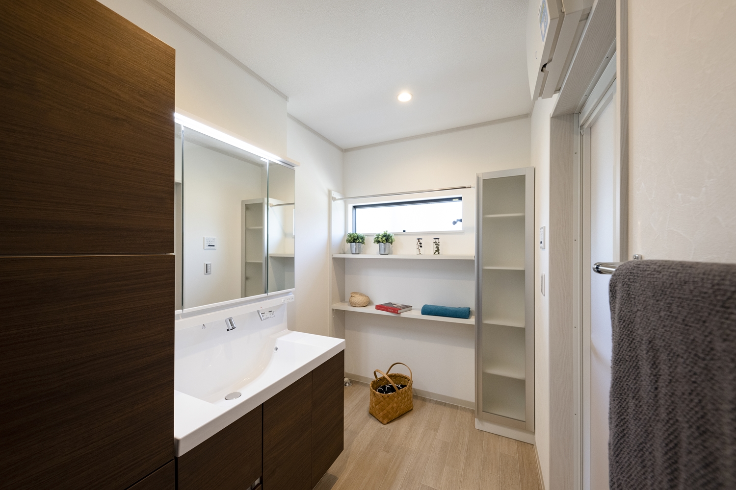 スマートな見た目、家具のようなデザインのおしゃれな洗面化粧台。
