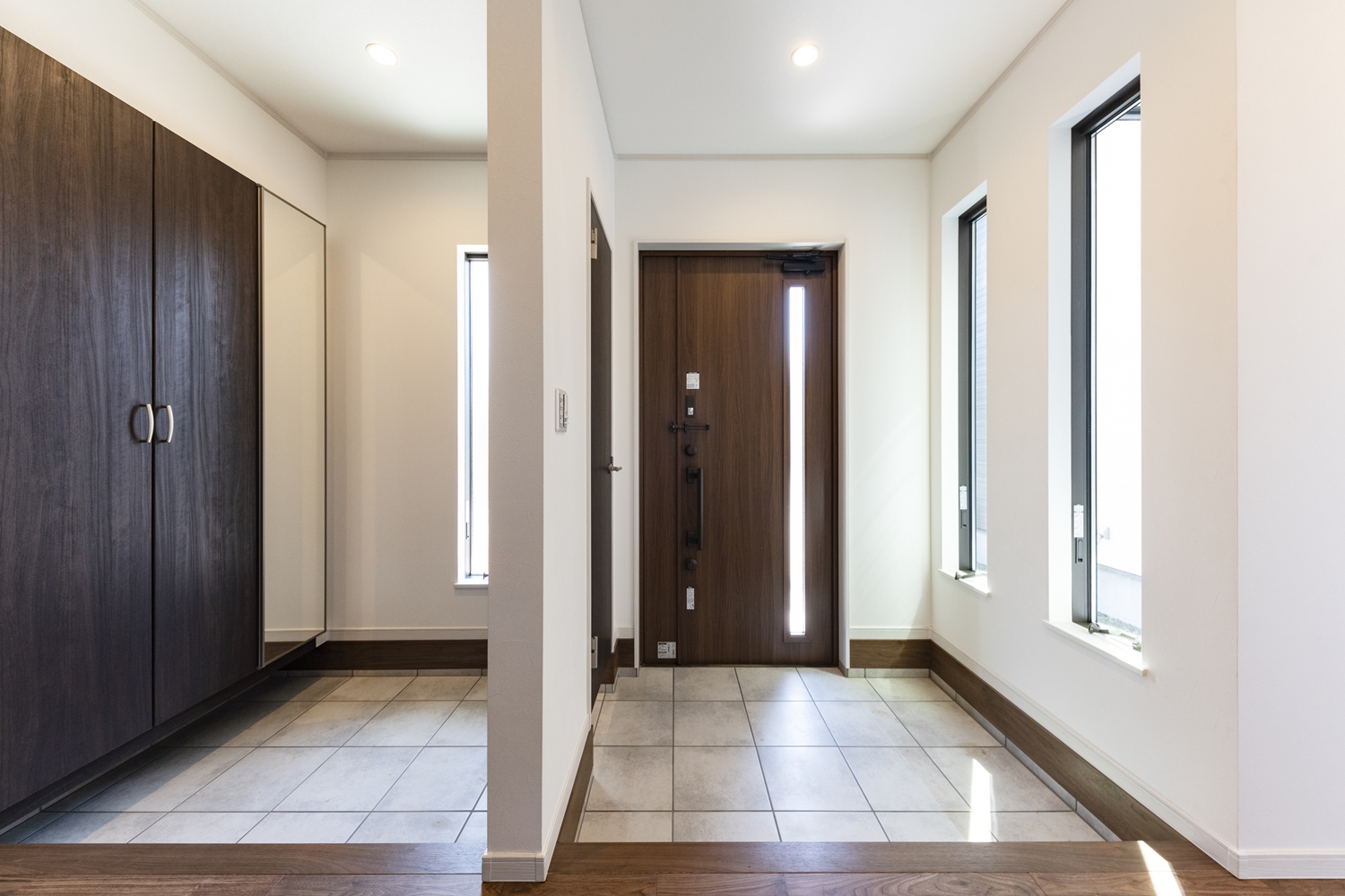 ファミリーエントランスとゲストエントランスに分けることにより、ゲストエントランスはいつもきれいに。