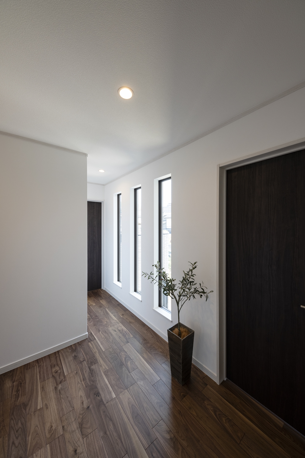 ナチュラルモダン埼玉県川越市27坪~30坪未満玄関土間、小上がり、吹き抜け、書斎、リビングイン階段、スリット階段、スタディ/ミセスコーナー、ファミリークローゼット