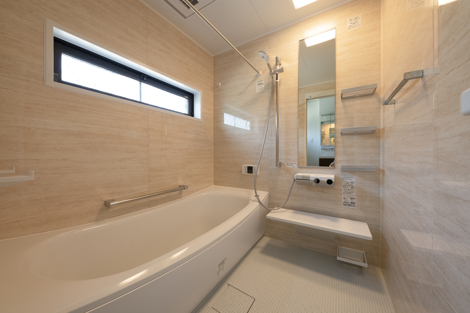 木目調で柔らかい雰囲気のバスルーム。温かい空間に包まれて心身ともにリラックスいただけます。