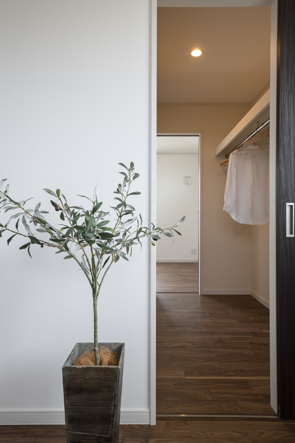 複数の部屋から出入りできる共有ウォークインクロゼット。