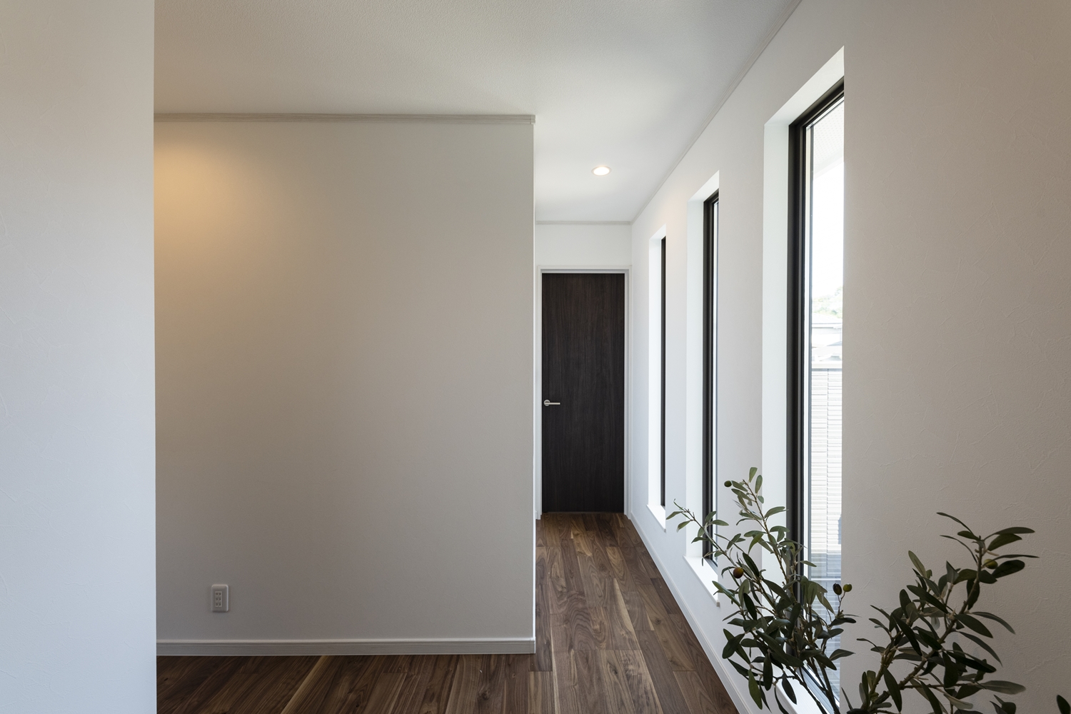 窓からたっぷり光がふり注ぐ、明るく風通しの良い廊下。