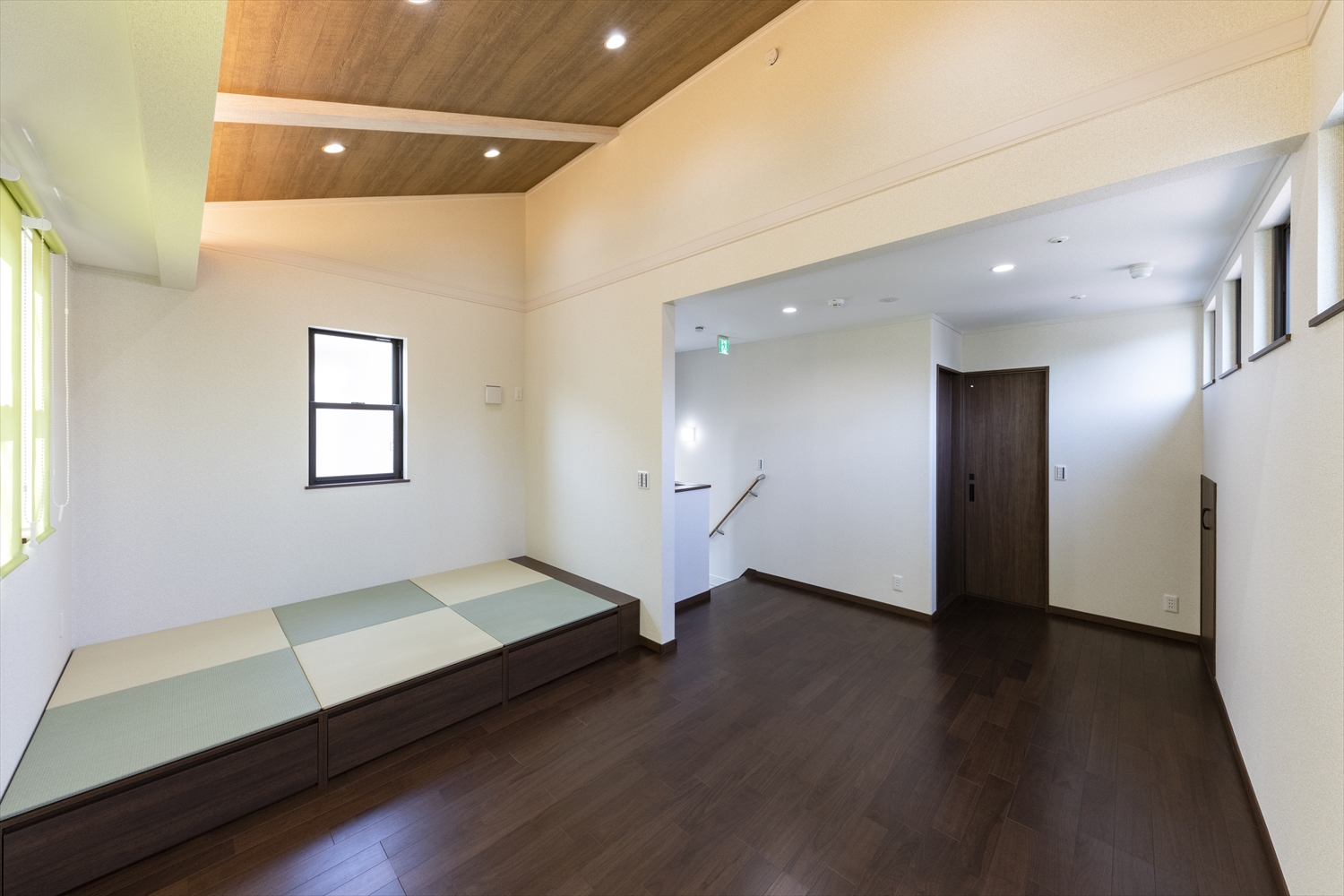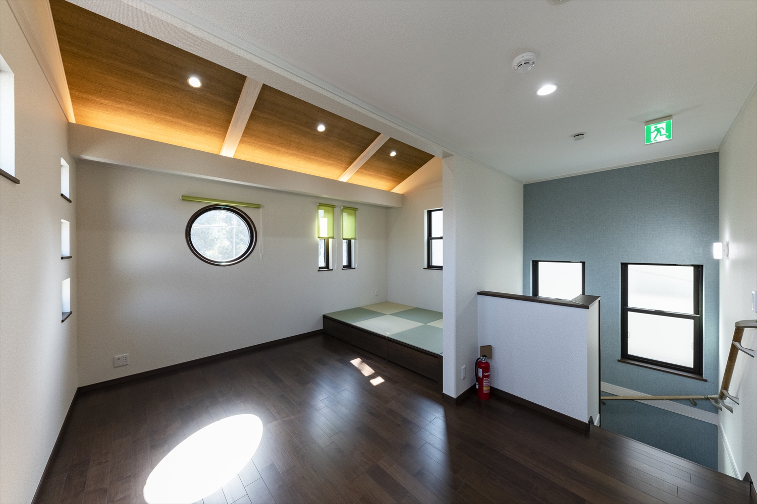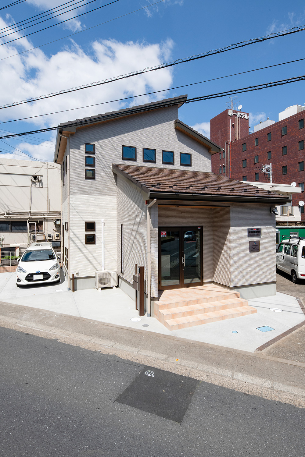 モダンなボーダーデザインをベースにしたシンプルな和モダンテイストの外観デザイン。小上がり畳スペースなどお施主様のこだわりが、いっぱい詰まった新築事務所が完成しました。