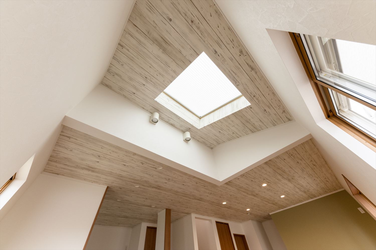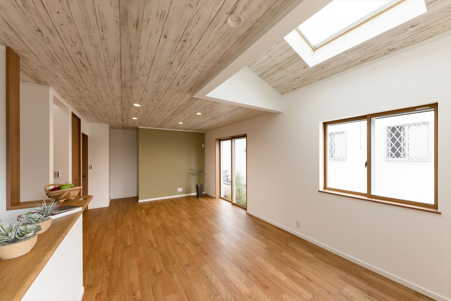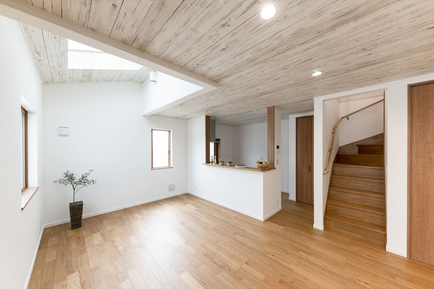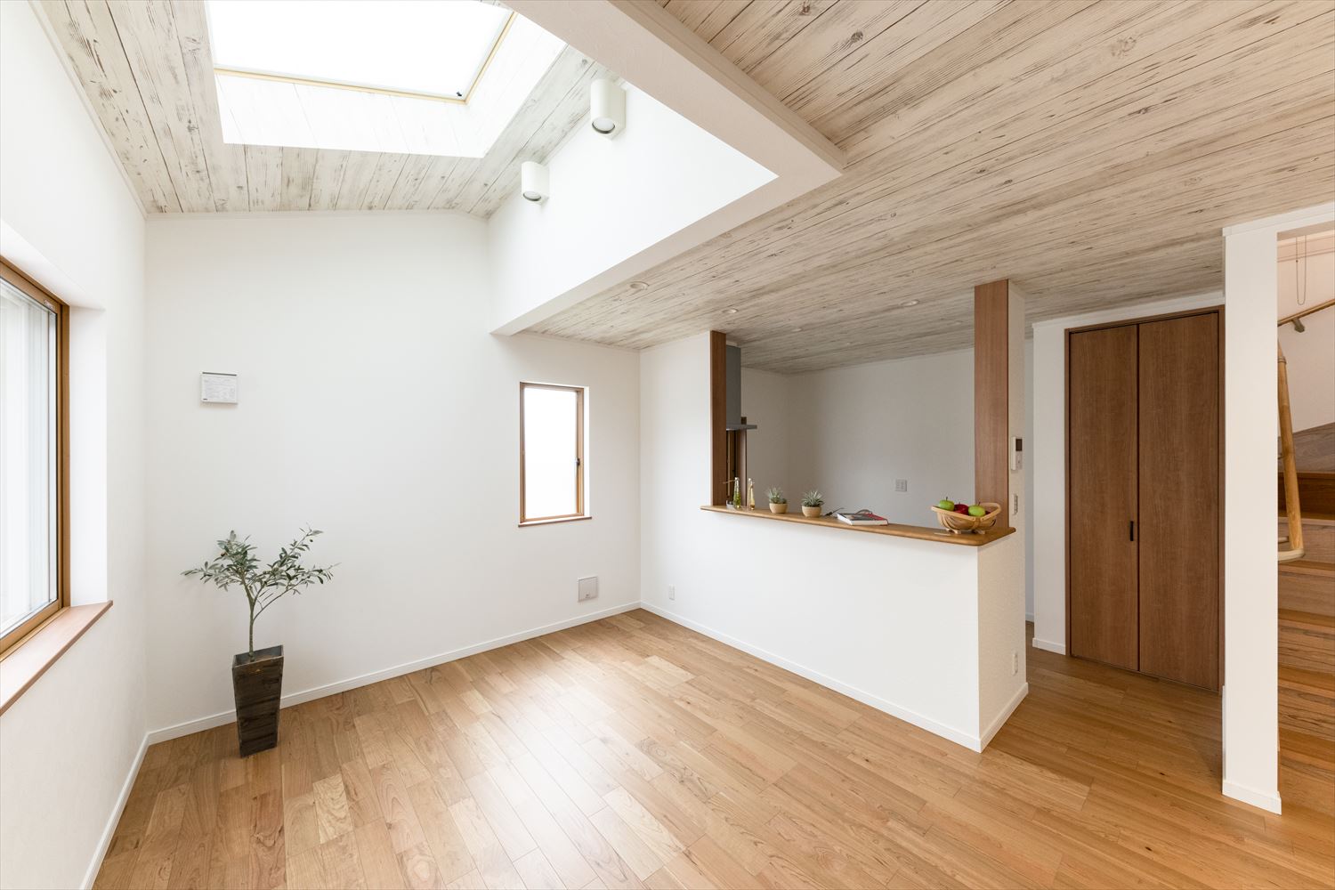 トップライト×勾配天井で明るく広々とした空間が自慢のLDK。