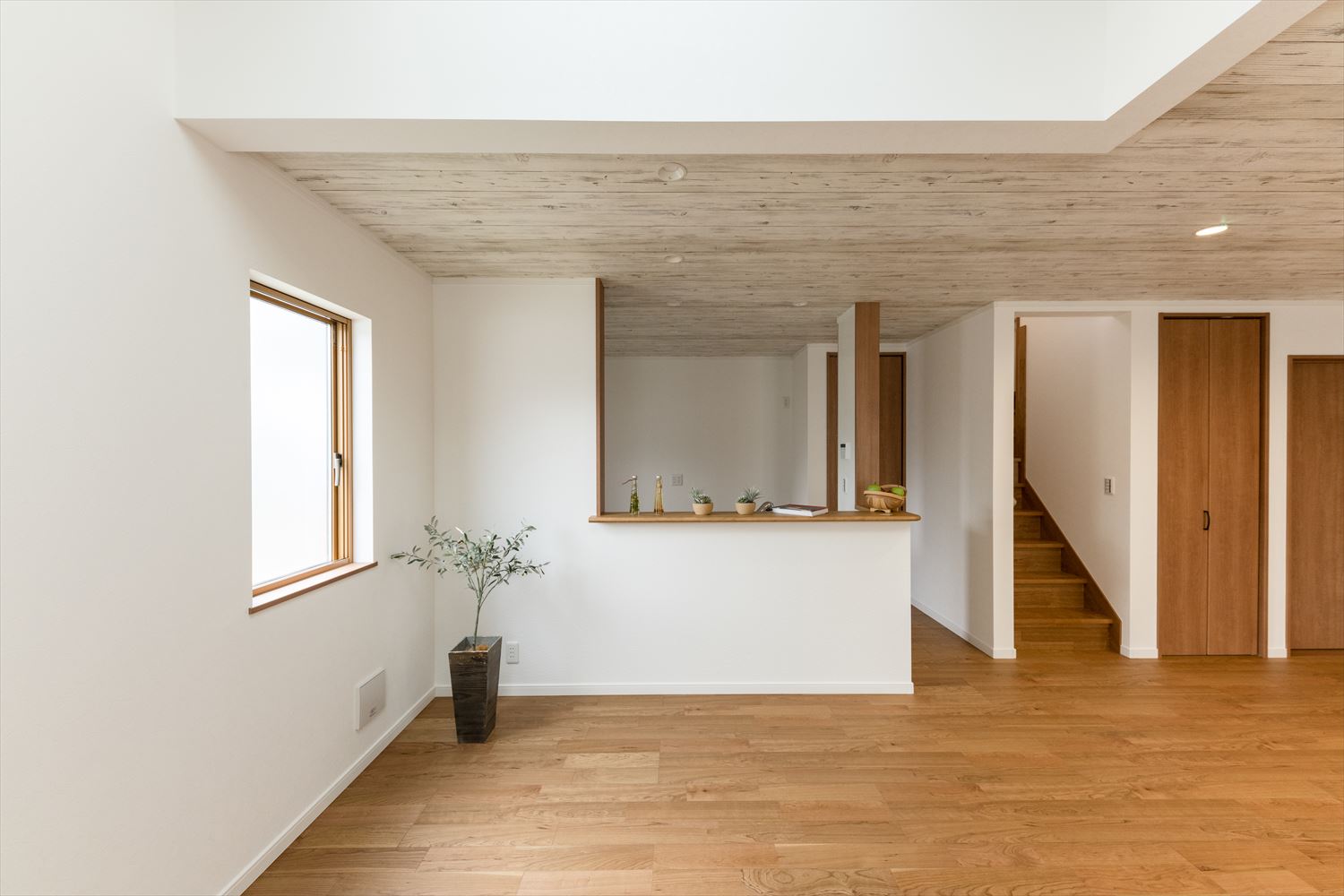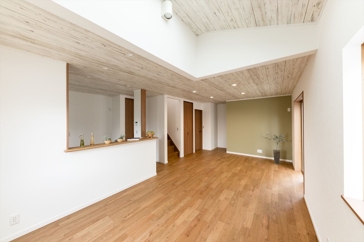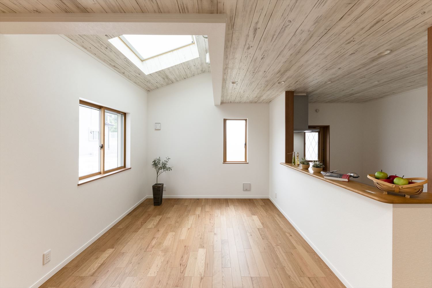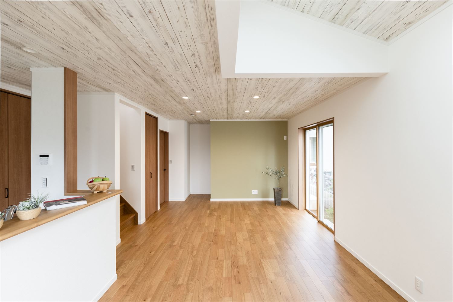 トップライト×勾配天井で明るく広々とした空間が自慢のLDK。