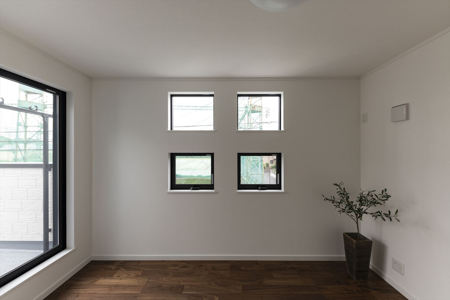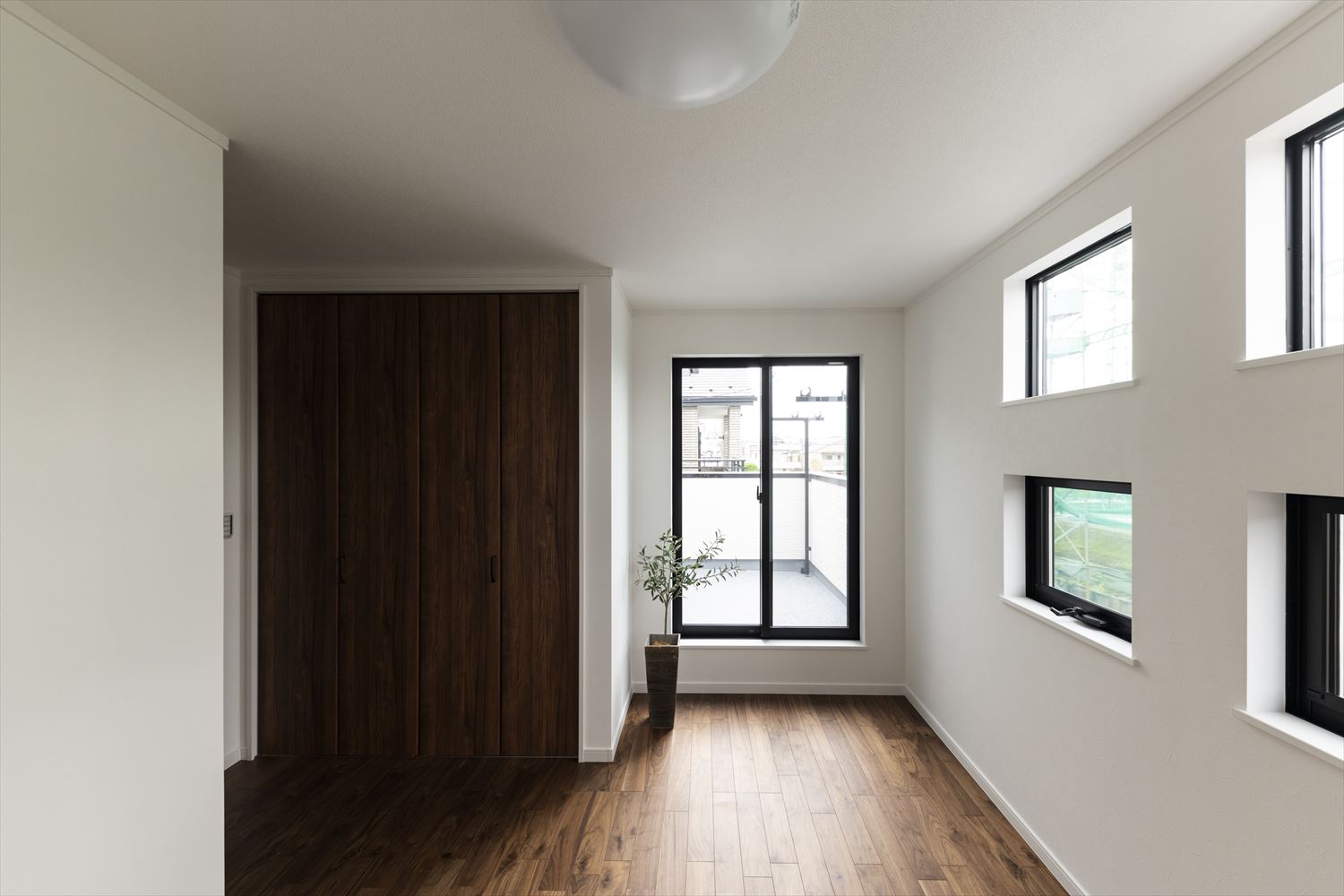 二階主寝室には風や光を取り込む「室内窓」を設置