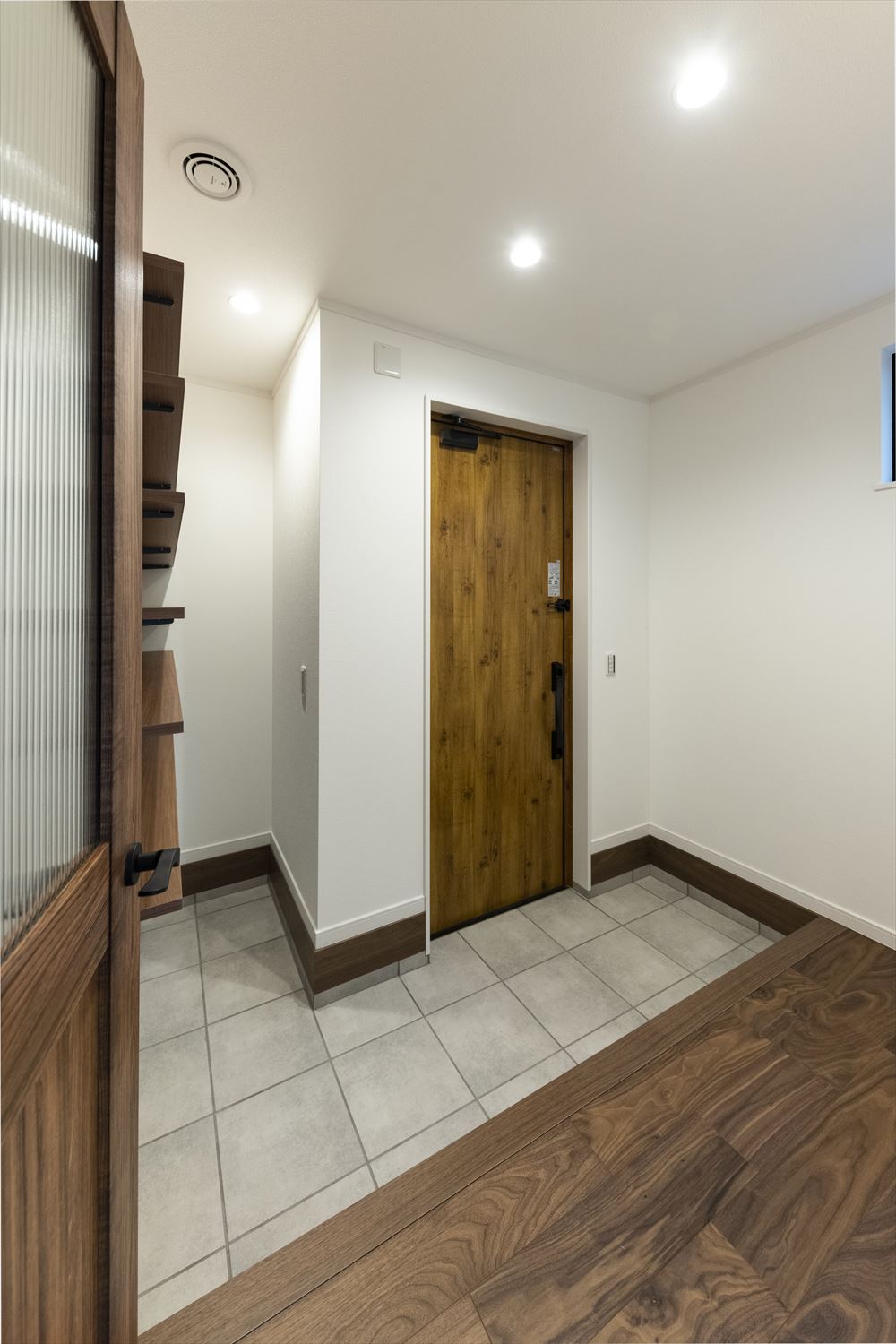 木目の優しい風合いに癒される。ゆとりのある玄関ホール。