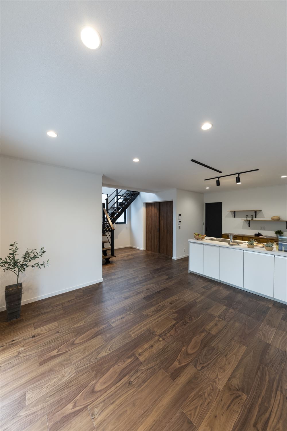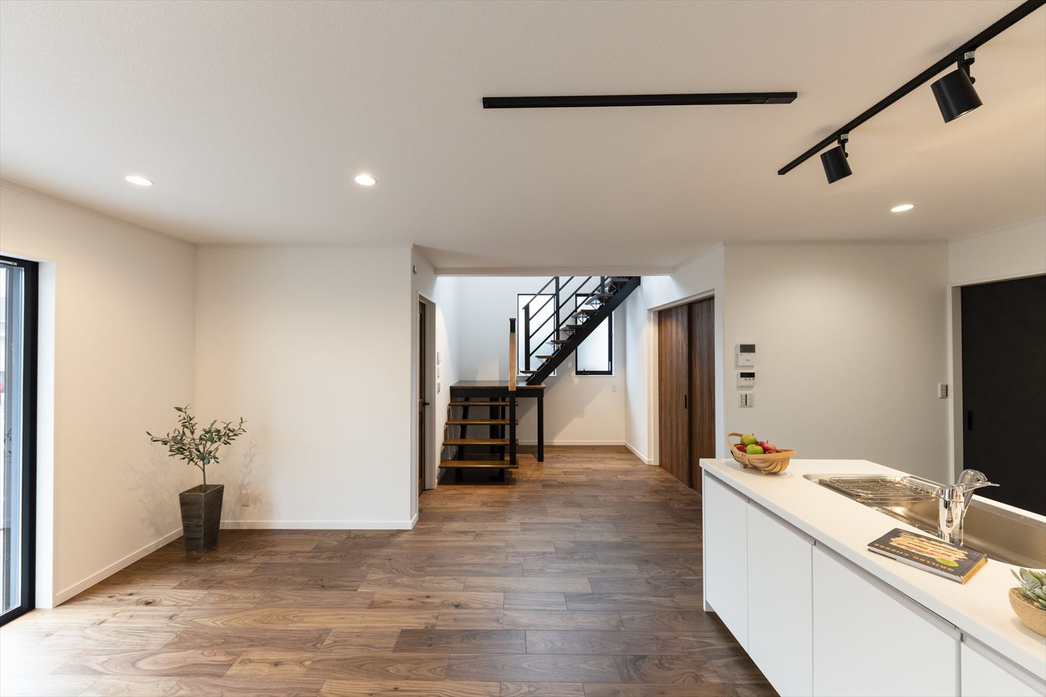スタイリッシュモダン東京27坪~30坪未満2階リビング、リビングイン階段、回遊型動線