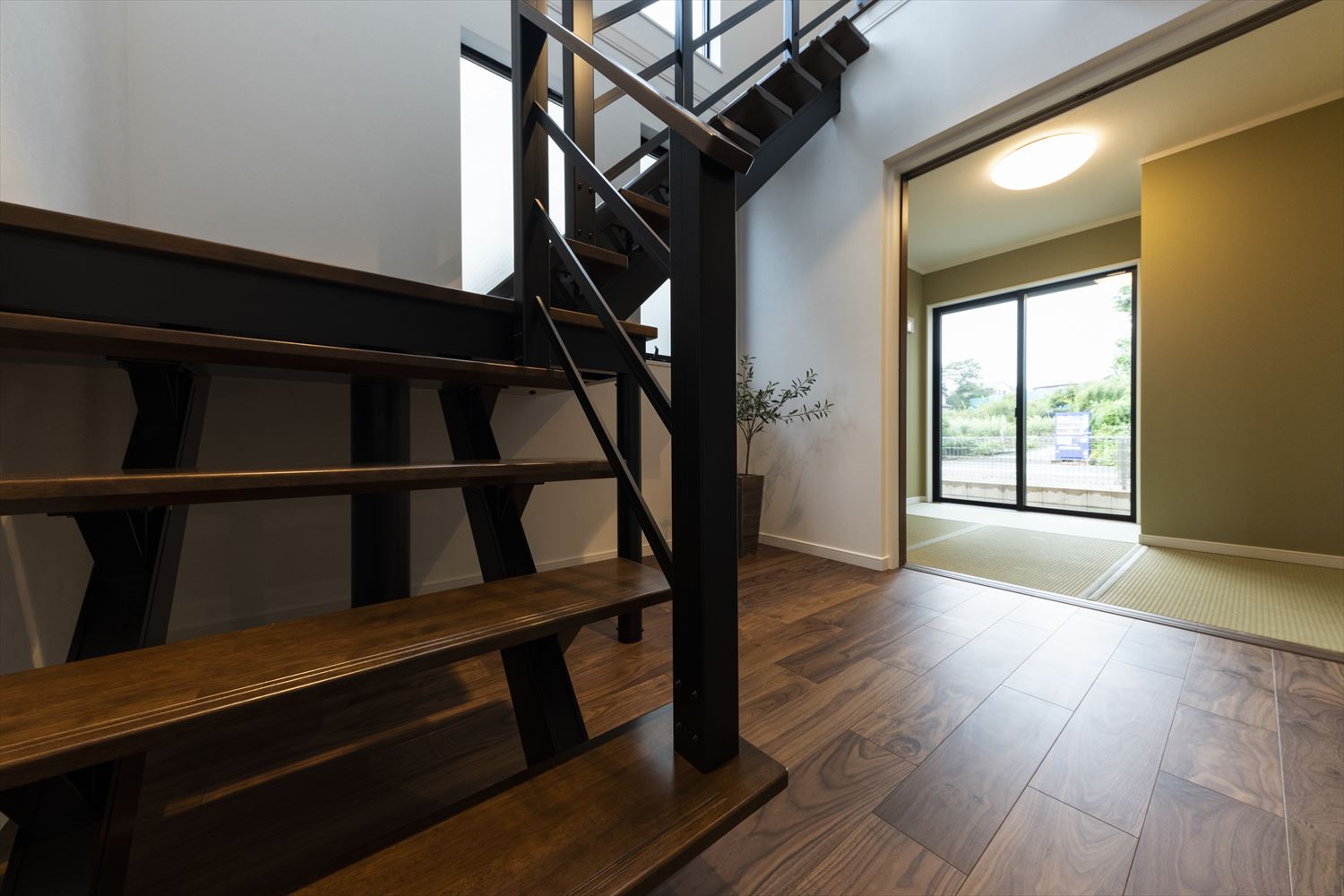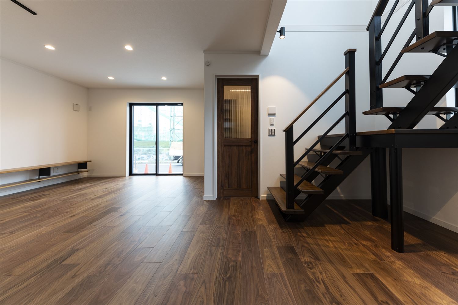 スタイリッシュモダン、クール&モダンスタイル東京27坪~30坪未満玄関土間、リビングイン階段