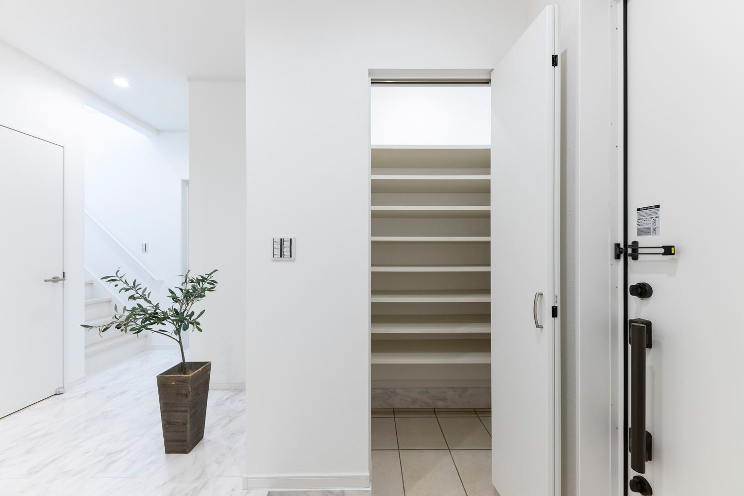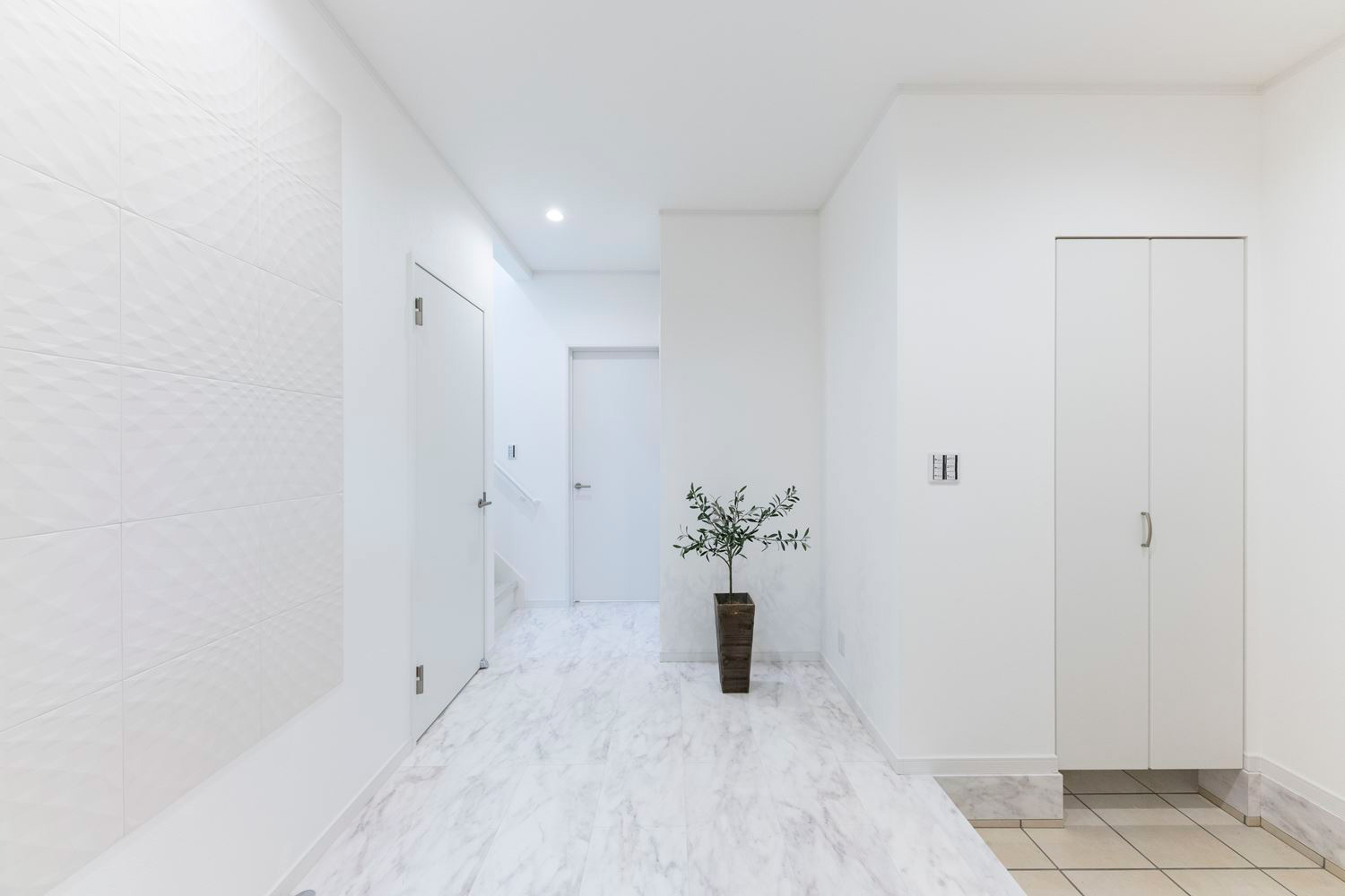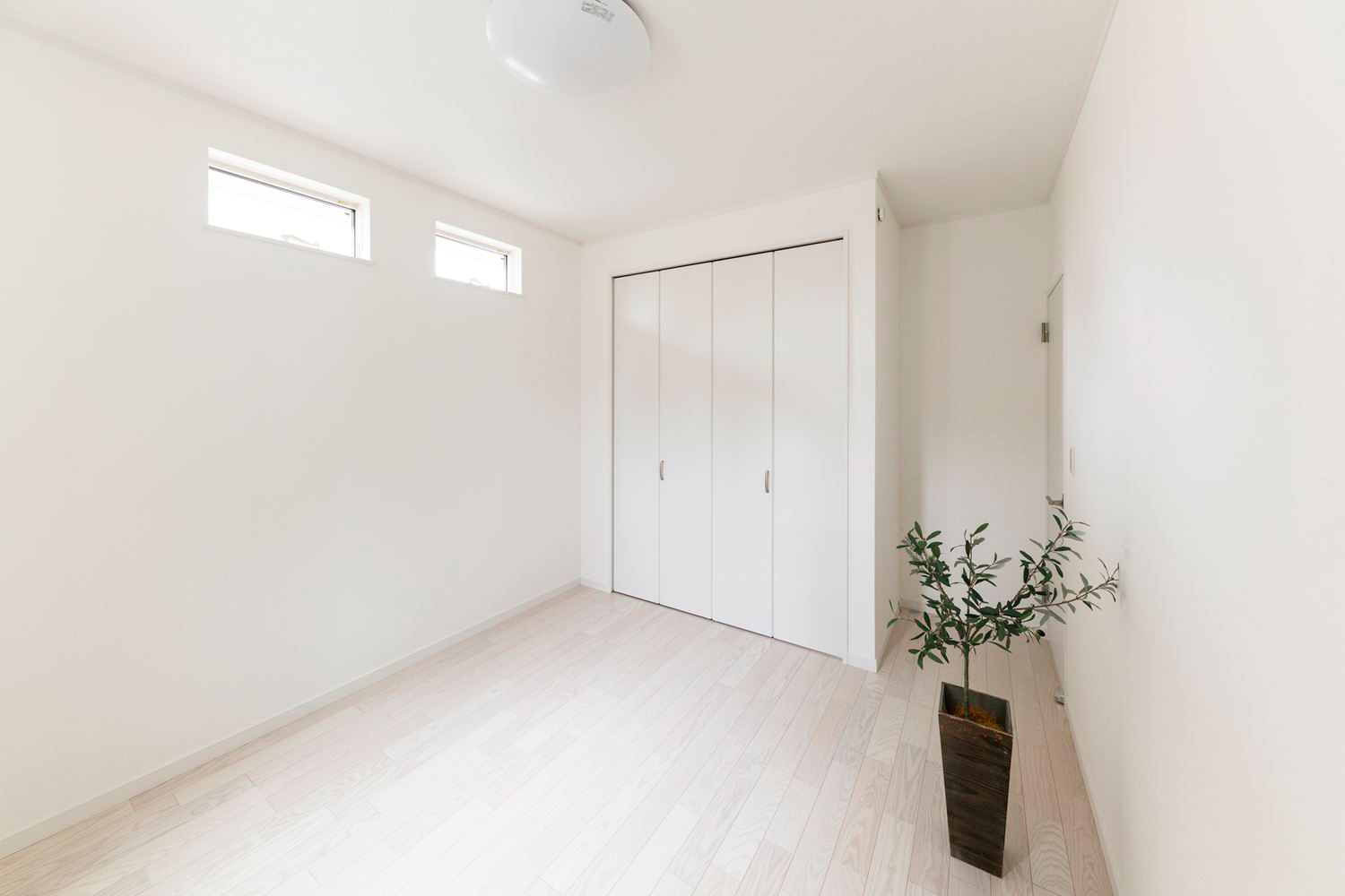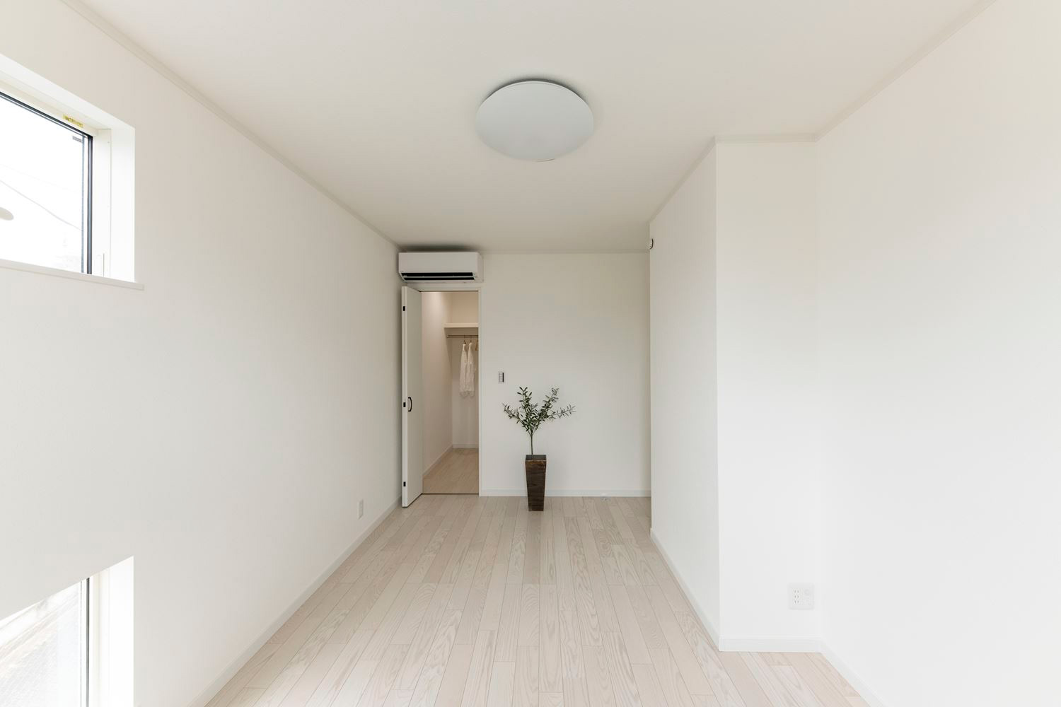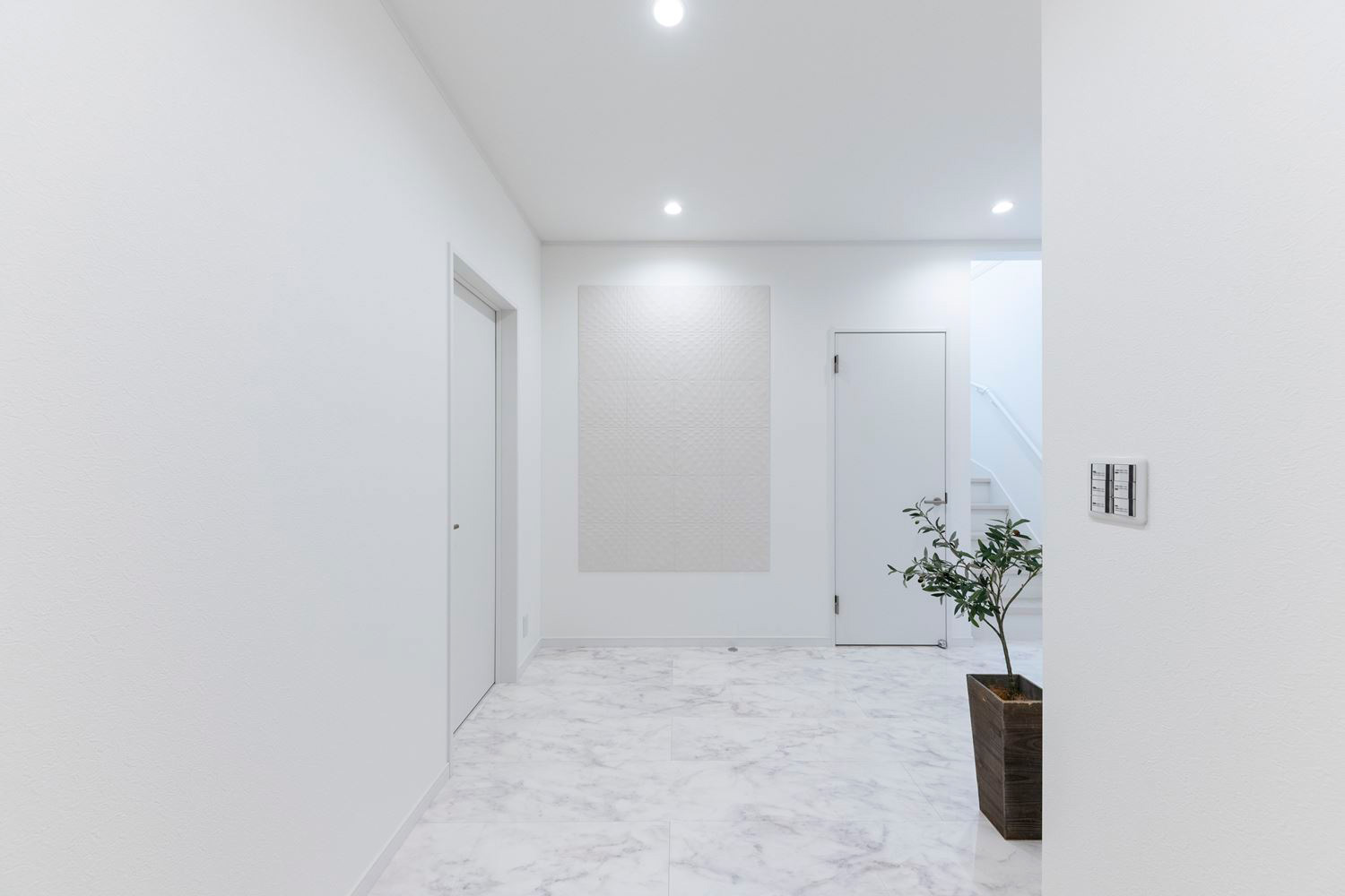 床やクロス等様々な「白」を主役とし、開放感に溢れたモダンな室内が印象的なお家。2階リビングはロフト+トップライトで明るく開放的な空間になり、ワンちゃんやネコちゃんにも嬉しい団らんの場になりました。