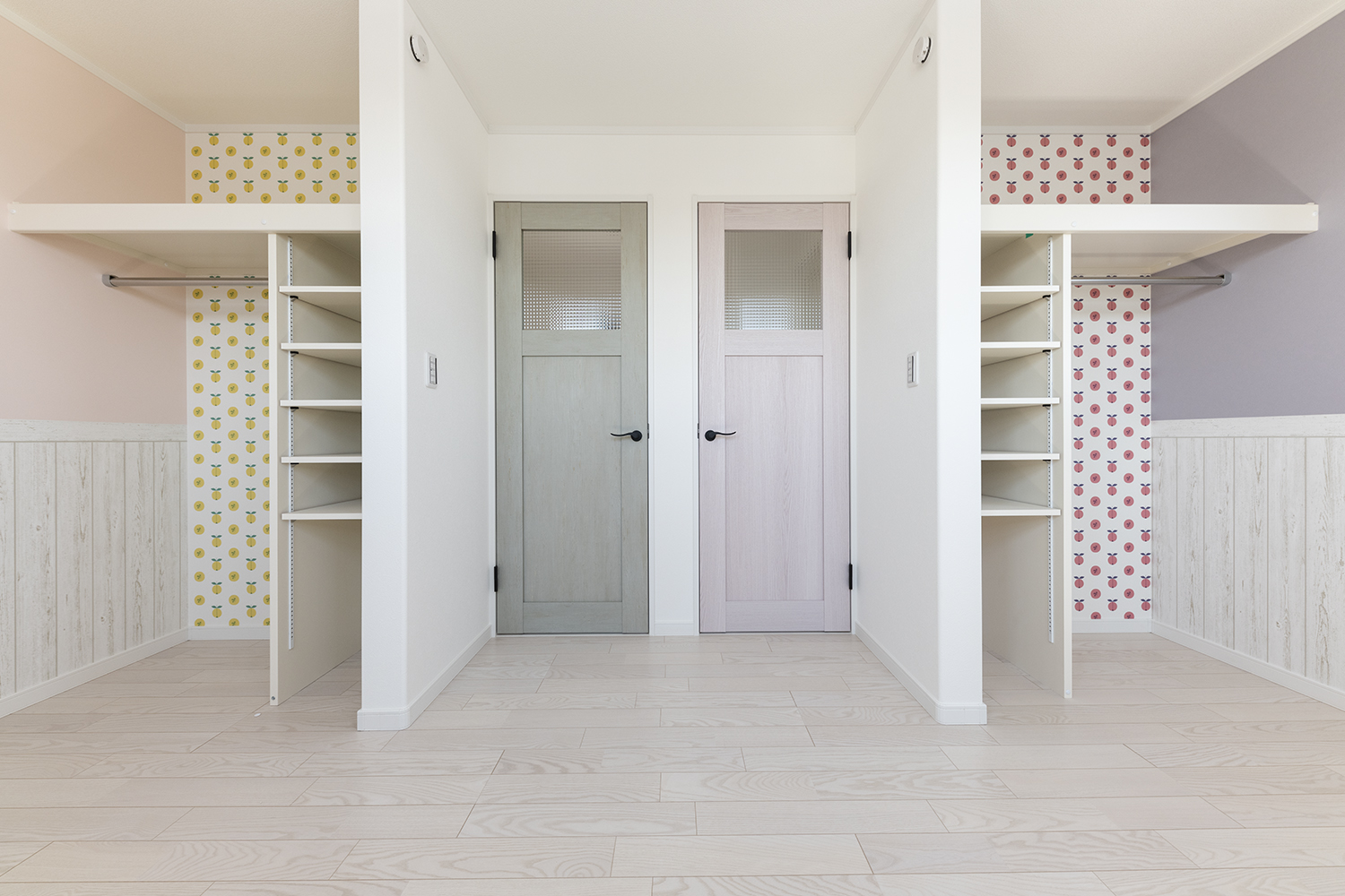 お子様の成長に合わせて、将来2部屋に出来る2ドア1ルームの間取りに。