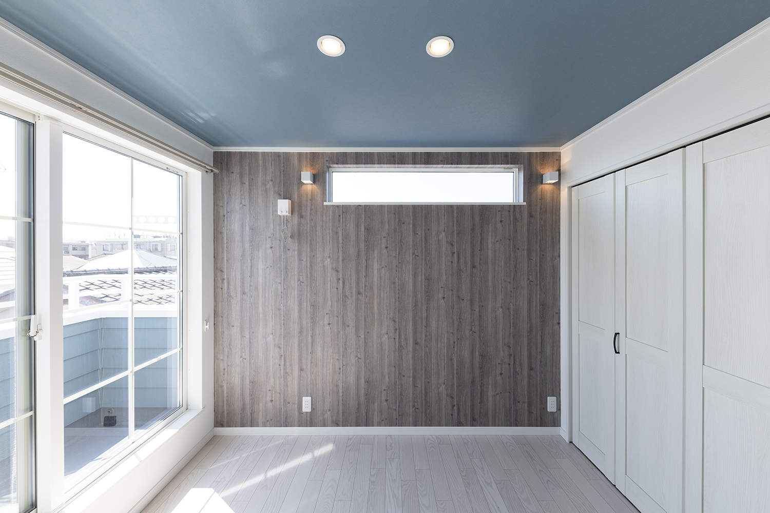 ブルー×木目のクロスで落ち着きと寛ぎのある3洋室。