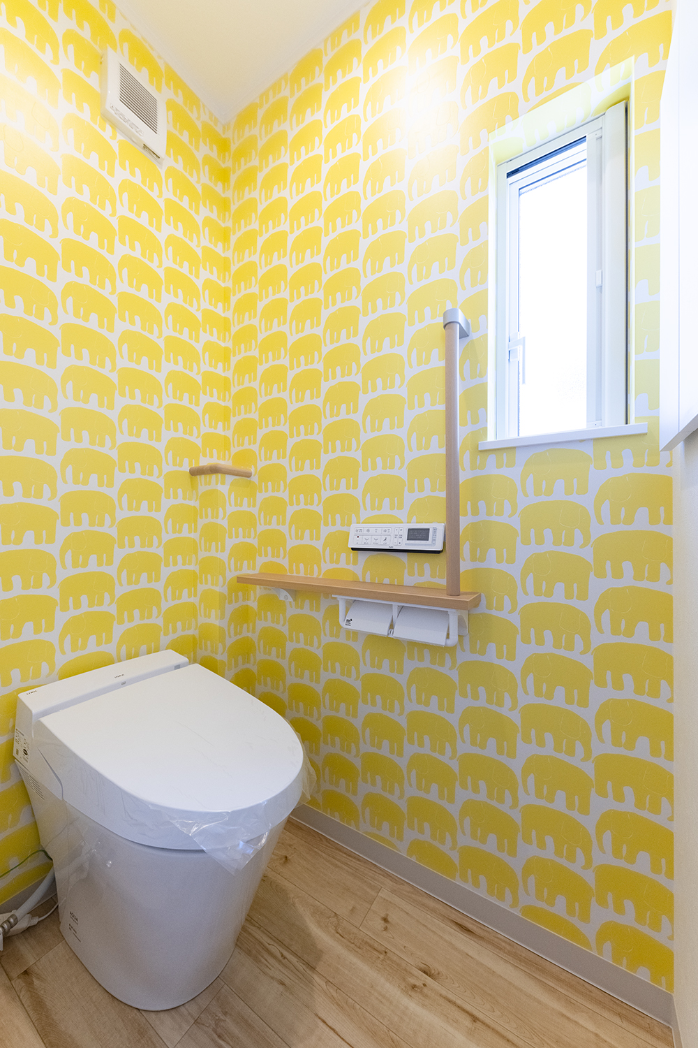 フィンレイソンのエレファンティのクロスをあしらった2階トイレ。