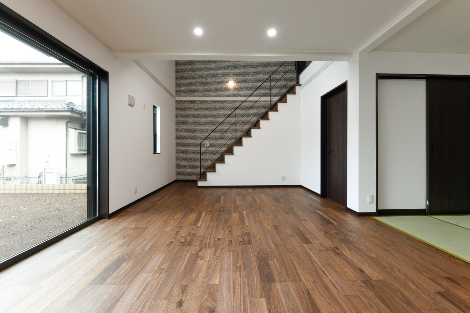 吹抜けで開放感のある空間が演出されたLDKにはおしゃれなリビングイン階段、畳コーナー、プライベートルームが繋がっています。自然とみんなが集まる快適スペースとなり、家族と過ごす時間を大切にしたお家になりました