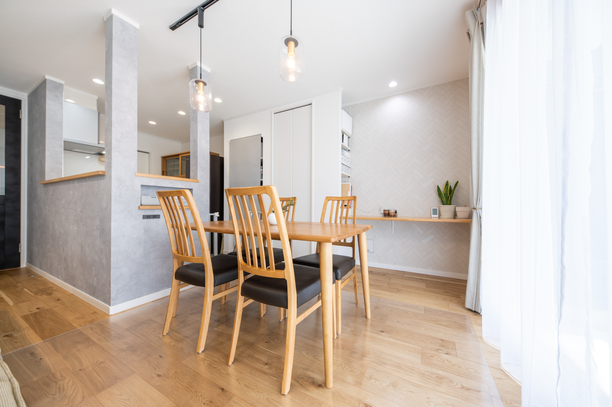 キッチン、リビング、ダイニング全体がとても開放的で一体感があります。